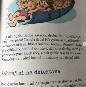 Také se v knize Adam detektivem objeví pár tipů, jak si zahrát na detektivy doma, což se mi moc líbilo a jednu z těch her už jsem se svým synem vyzkoušela a měla velký úspěch. Přijde mi, že od té doby neděláme nic jiného.