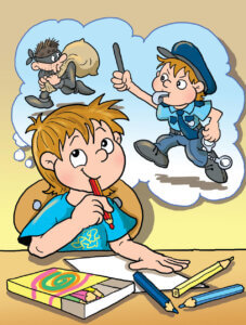 Adam ukázal obrázek. „ Já bych chtěl být policistou – chytal bych darebáky a řešil záhady. Byl bych určitě dobrý detektiv.“