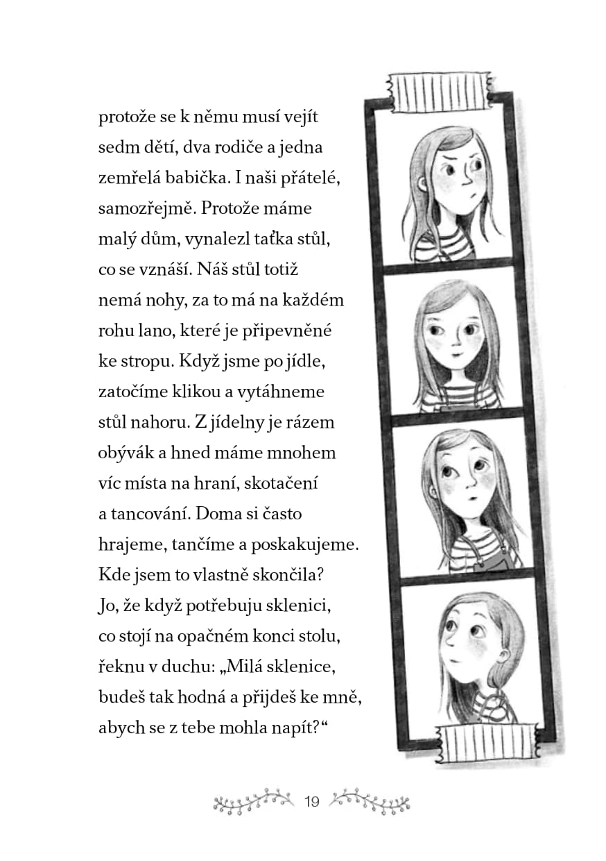 Adéla se svými pěti sourozenci, rodiči a neviditelnou babičkou Ředkvičkou bydlí ve Čmeláčí ulici číslo 7, v tom nejveselejším a nejlepším domě, jaký jste kdy viděli! Občas se tam dějí hodně neobvyklé věci. Třeba ta záležitost se sedmým sourozencem, kterého si děti moc přejí. Šest je málo – a to se musí napravit. Sedmička je navíc jejich šťastné číslo!