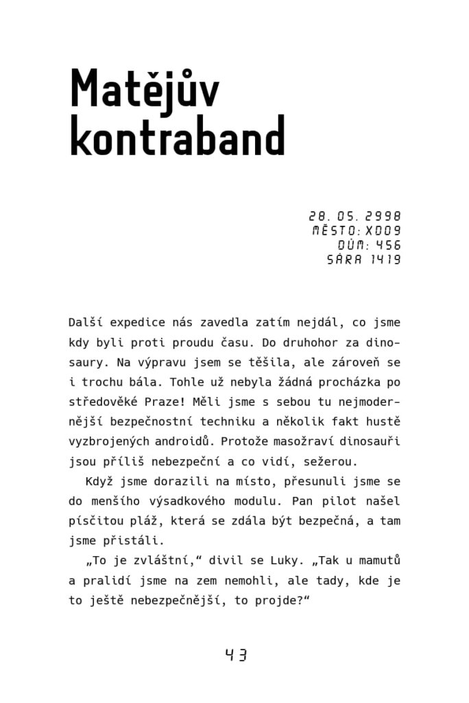 Sára žije v roce 2998. Její škola vlastní stroj času, díky kterému mohou žáci cestovat do minulosti. A Sára si všechna dobrodružství zaznamenává do deníku, který nešťastnou náhodou ztratí při jedné z výprav.