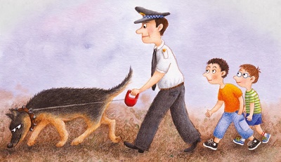 „Viděli jsme zloděje, kluci ho honí, honem pojďte s námi!“ vyhrknul ze sebe Vašek, jakmile dorazili na policejní stanici. Policista měl zrovna volné ruce, tak popadl svou čepici, vysílačku a přivolal služebního psa. Všichni pospíchali směrem k muzeu. Kluci policistovi po cestě líčili, co se vlastně stalo.