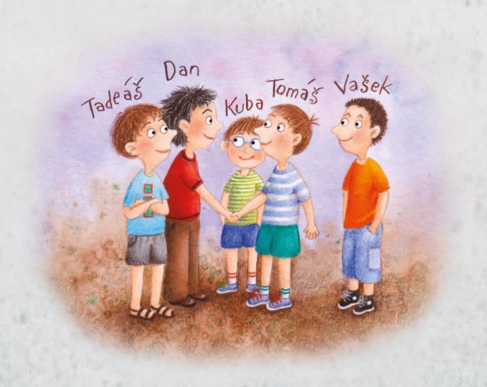 Kluci byli netrpěliví. Chtěli do sádry každou chvíli dloubat, aby se přesvědčili, jestli už ztuhla. Nejmladší Kuba je za to napomínal a kluci se smáli. Z dlouhé chvíle si začali vyprávět vtipy.