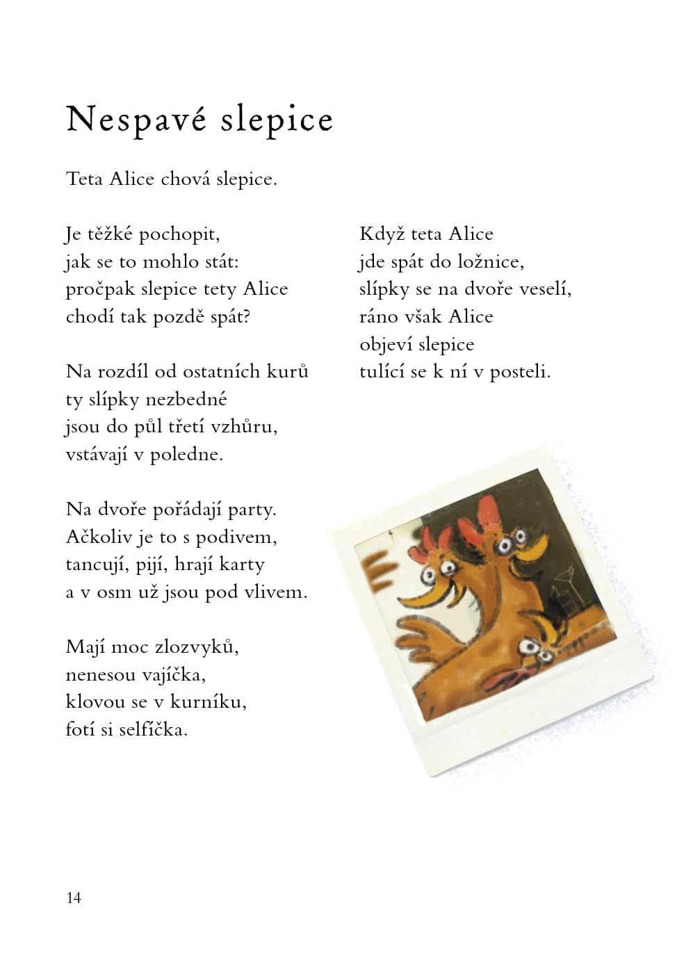 Básničky psané současným jazykem se hodí k recitaci i předčítání a díky hře se slovy pomohou čtenářům poznat češtinu a nenásilnou formou si procvičit výslovnost.