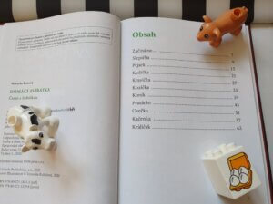 Naše dětská knihovnička se minulý týden rozrostla o novou krásnou knížku z nakladatelství Bambook. Jmenuje se Domácí zvířátka – Čtení s babičkou, napsala ji Marcela Kotová a poutavě ji ilustrovala Veronika Kubáčová.
