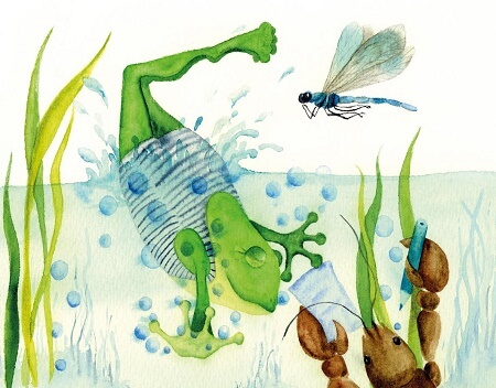„Kvák. Co se tu tak plahočíš? Kvák,“ povídá ta žába. Byla to skokanka zelená, celá mokrá.