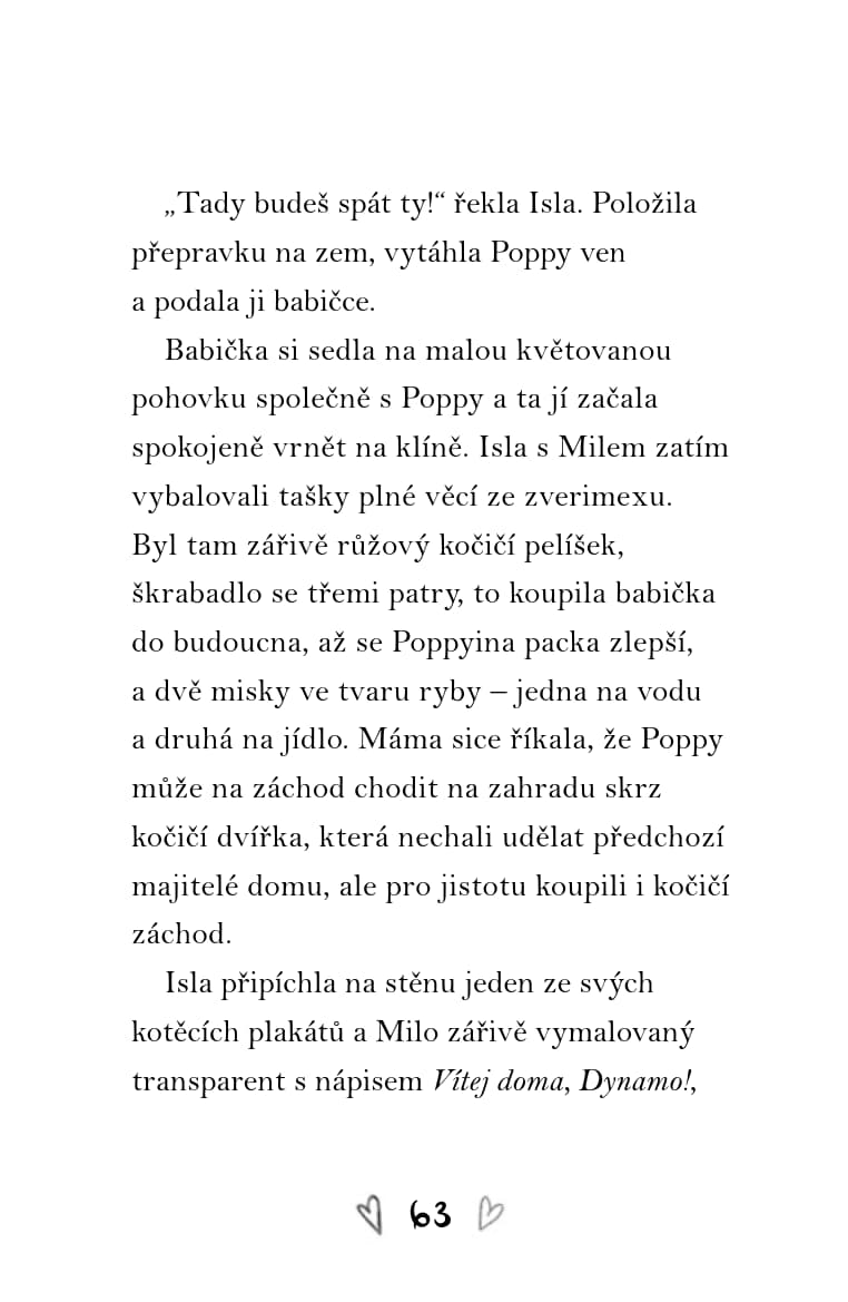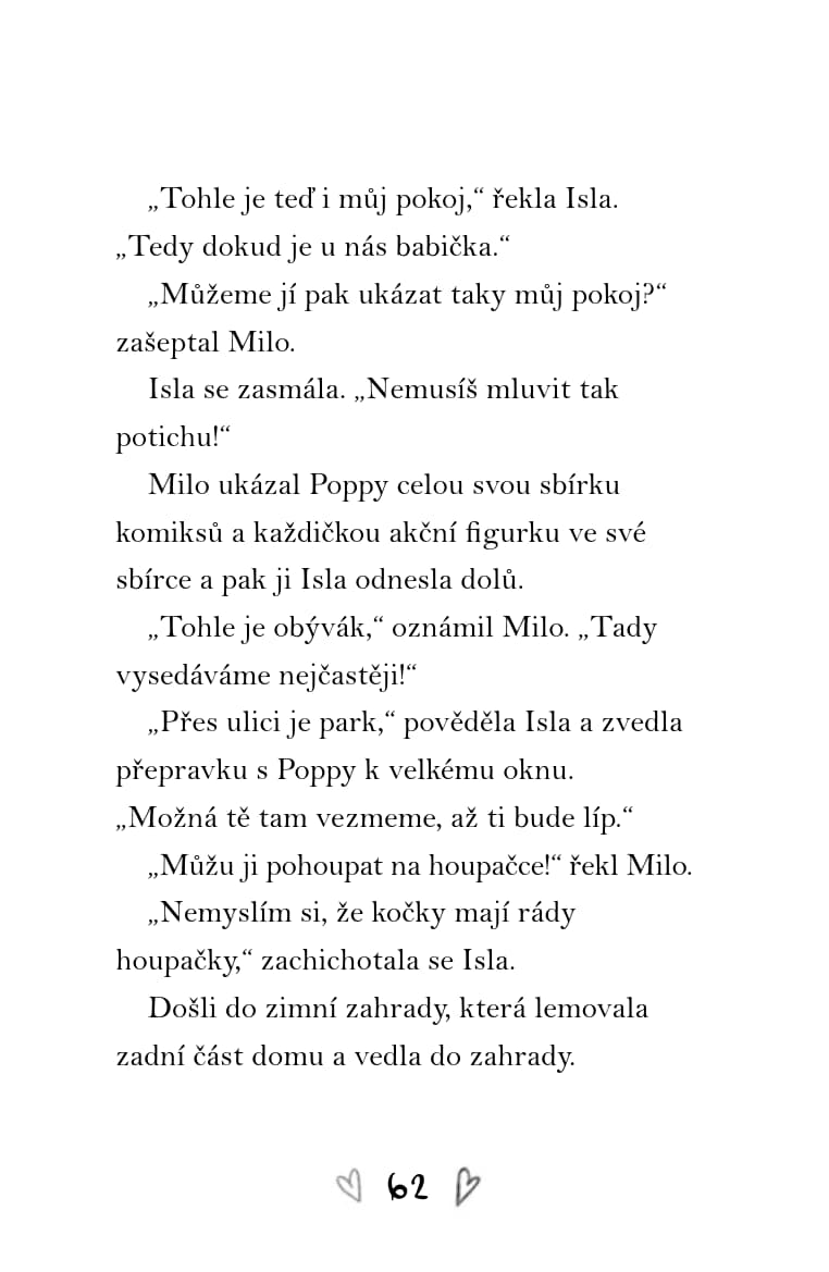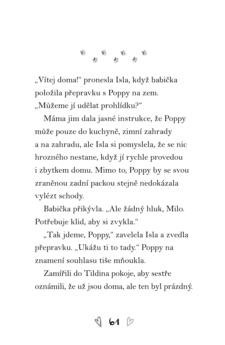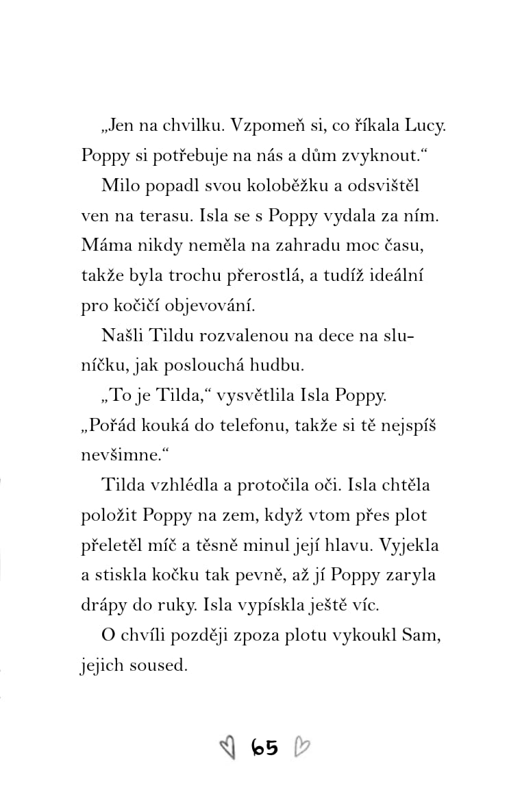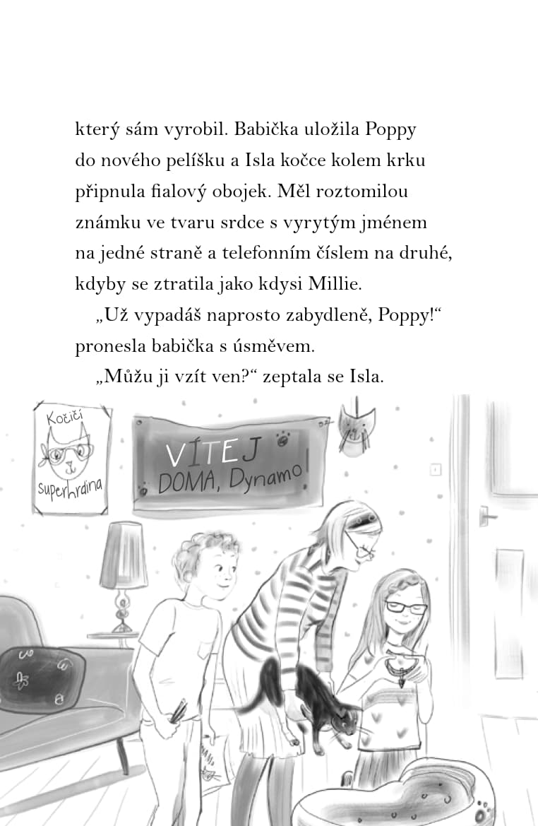 Isla Palmerová bláznivě miluje kočky a touží mít nějakou doma. Jenže maminka jí to nedovolí, protože už se stará o zvířata ve veterinární ordinaci, kde pracuje. Pak se ale Isla setká s Poppy, rozkošnou opuštěnou kočkou, která potřebuje milující domov. V útulku není místo, a tak si ji Isla smí dočasně vzít domů. Netrvá dlouho a kočka změní život celé rodině. A navíc: není jediná, která potřebuje domov…