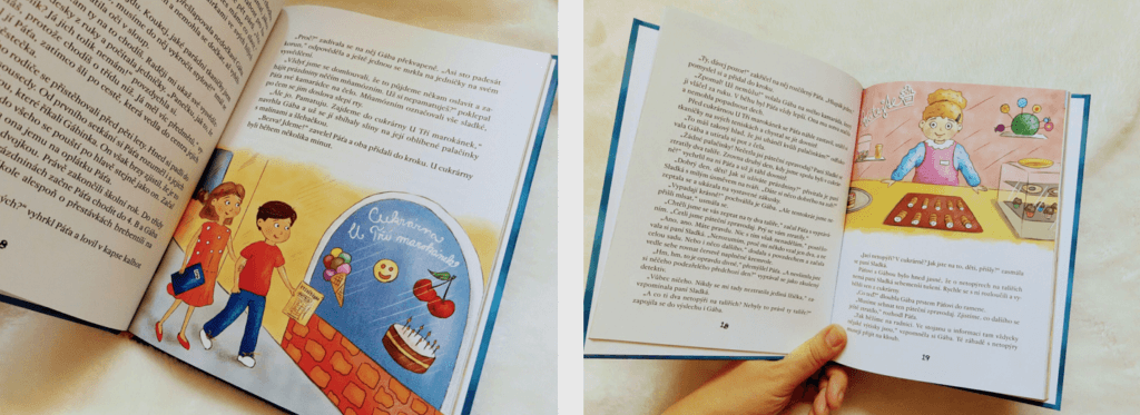 Kniha mi trošku připomínala Správnou pětku od Enid Blytonové, kterou jsem v dětství moc ráda četla. Vyprávění má spád a nečekané rozzuzlení. Kniha je členěná na kapitoly, text je doprovázen o příjemné ilustrace, které si vytvořila přímo autorka knížky. V podstatě na každé stránce najdeme alespoň malý obrázek.
