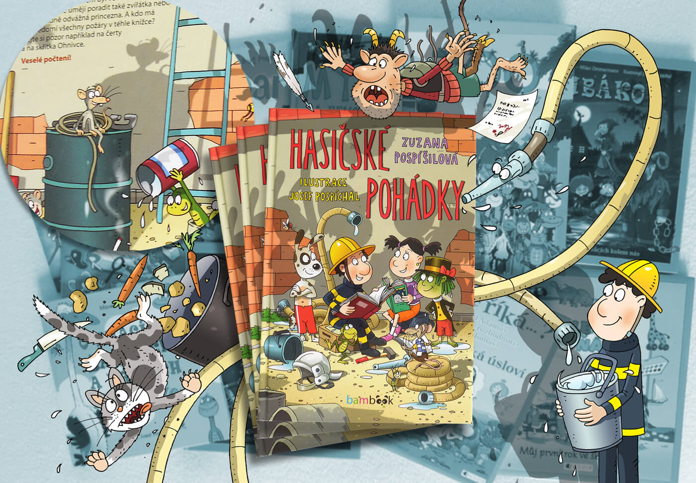 Hasiči se vždycky snaží, aby i ten nejžhavější průšvih měl dobrý konec, a tak si svoje pohádky rozhodně zaslouží. Víte, že prvním hasičem byl vodník Vodička? Budete se možná divit, kdo další ještě přiloží ruku k dílu, když jde o hašení požárů. V těchto pohádkách mají kromě hasičů svoje místo taky vodníci, zvířátka a hasičská auta. Ti všichni dětem připomenou, že oheň je dobrý sluha, ale zlý pán. A kdo má všechny neplechy s ohněm na svědomí? Dejte si pozor na čerty a na skřítka Ohnivce.
