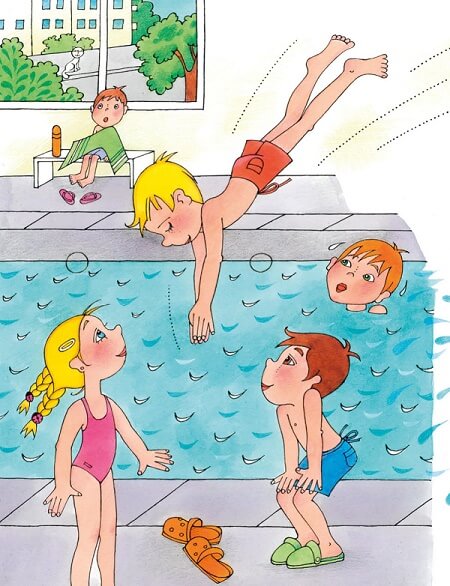 Od té chvíle byl králem bazénu, a když se na něho copatá Lucinka poprvé v životě s obdivem usmála, cítil se jako v sedmém nebi. A příčina jeho úspěchu? Dokázal překonat strach, s vodou byl od té chvíle kamarád a nikdo ze spolužáků se mu už nikdy nesmál.