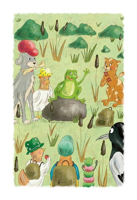 „Tak a teď jsme všichni připraveni jít na náš první výlet,“ hlásí nedočkavý kohoutek. A aby to nikdo nemohl přeslechnout, hlasitě, opravdu hlasitě zakokrhá. Pro jistotu třikrát: „Kykyryký, kykyryký, kykyryký…“