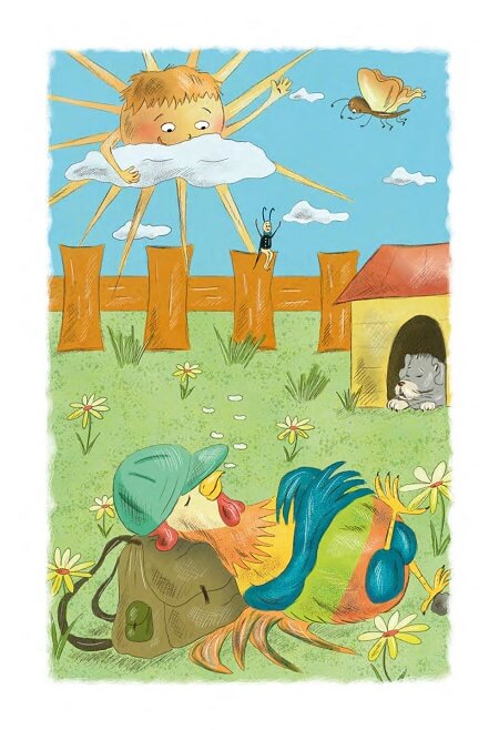 Ale sluníčko si z jeho slov vůbec nic nedělá. Dobře totiž ví, že se kohoutek nikdy nemůže dočkat rána. A tak se jen na kohoutka vlídně usměje, zamává mu a hřeje dál.