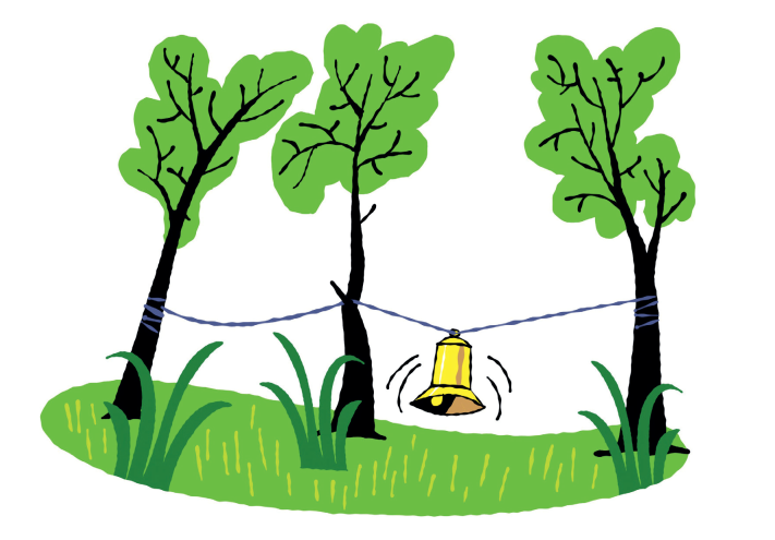 Další nápad byl udělat cestičku ze špekáčků, která by vedla směrem od lesa až k tábořišti. Verunka ale spočítala, že by na takovou cestičku bylo potřeba aspoň třicet špekáčků. A tolik jich maminka v zásobě neměla. Nakonec vyhrál nápad natáhnout mezi stromy provázek a na jeho konec připevnit malý zvoneček. Až umboška proběhne kolem, dotkne se provázku a zacinká. Oni tak uslyší, kde je, rychle přiběhnou a zkusí ji chytit.