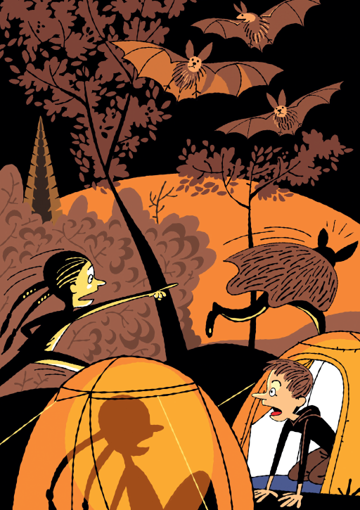 „To vám povím večer u táboráku. A teď šup, jdeme nasbírat dřevo na oheň a pruty na opékání špekáčků.“