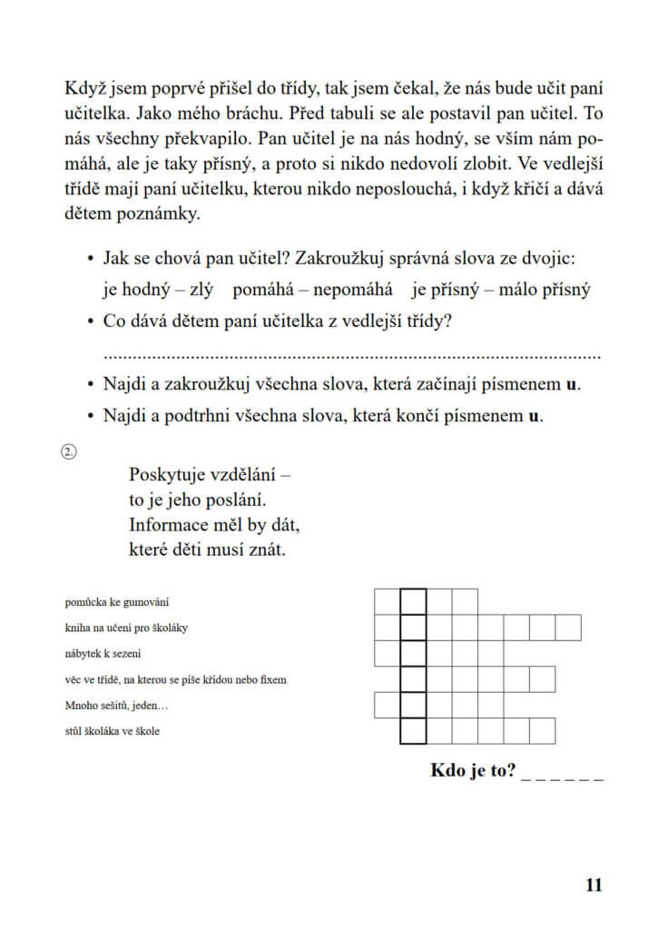 Soubor hádanek, křížovek a textů s úkoly je určený pro děti mladšího školního věku. Díky pracovnímu sešitu se děti zabaví s písmenky, čtením a psaním a rozšíří si slovní zásobu.
