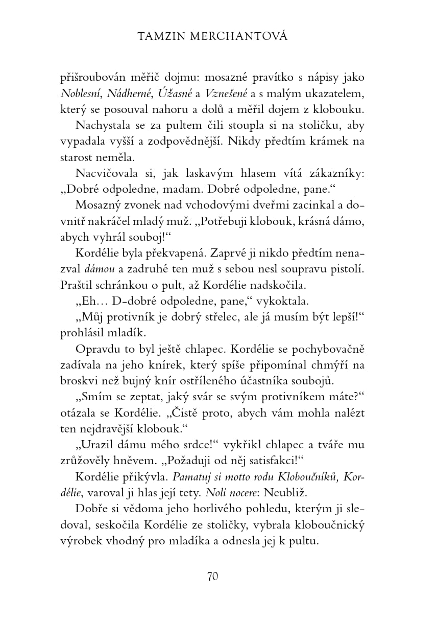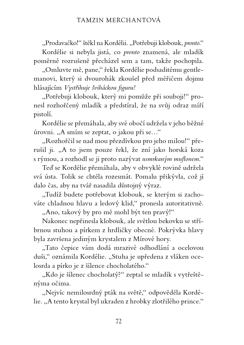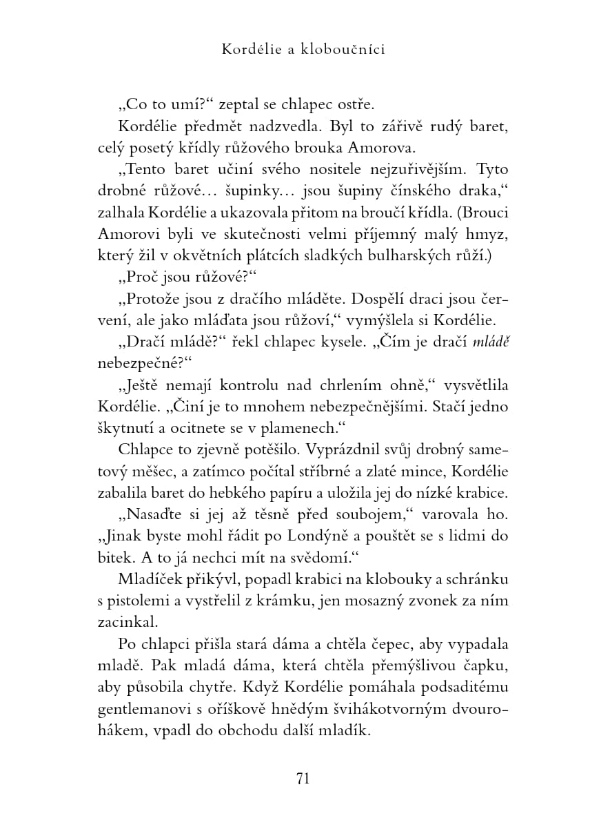Strhující příběh plný překvapení a dobrodružství představuje podmanivou hrdinku Kordélii Kloboučníkovou a její mimořádný svět kouzel.