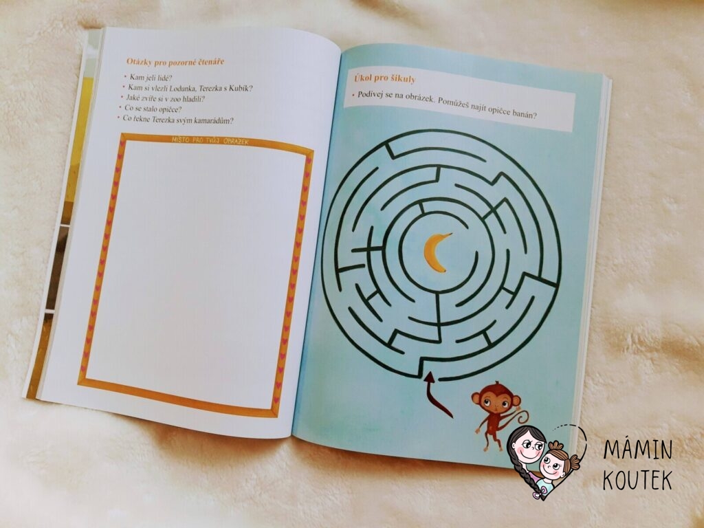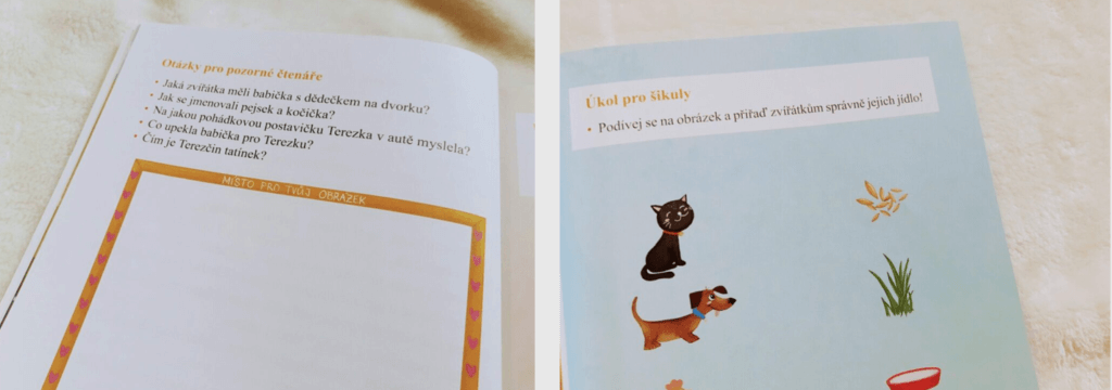Každá kapitola má jen pár stránek a ne jejím konci jsou otázky pro pozorné čtenáře a prostor, kde si děti mohou k příběhu nakreslit obrázek. Následují úkoly, které jsou lehké – obvykle něco spojit, seřadit, uhádnou…