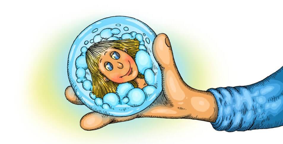 Všichni byli pro, a tak pan učitel vyndal z kapsy velkou kuličku, nebo malou kouli, podle toho, jak se to vezme. Otočil se k dětem zády a přehodil skleněnku třikrát z jedné ruky do druhé, přesně podle návodu. Sotva se mu kulička opět pohodlně usídlila v dlani, objevil se v ní obraz usměvavé víly Jasmíny.
