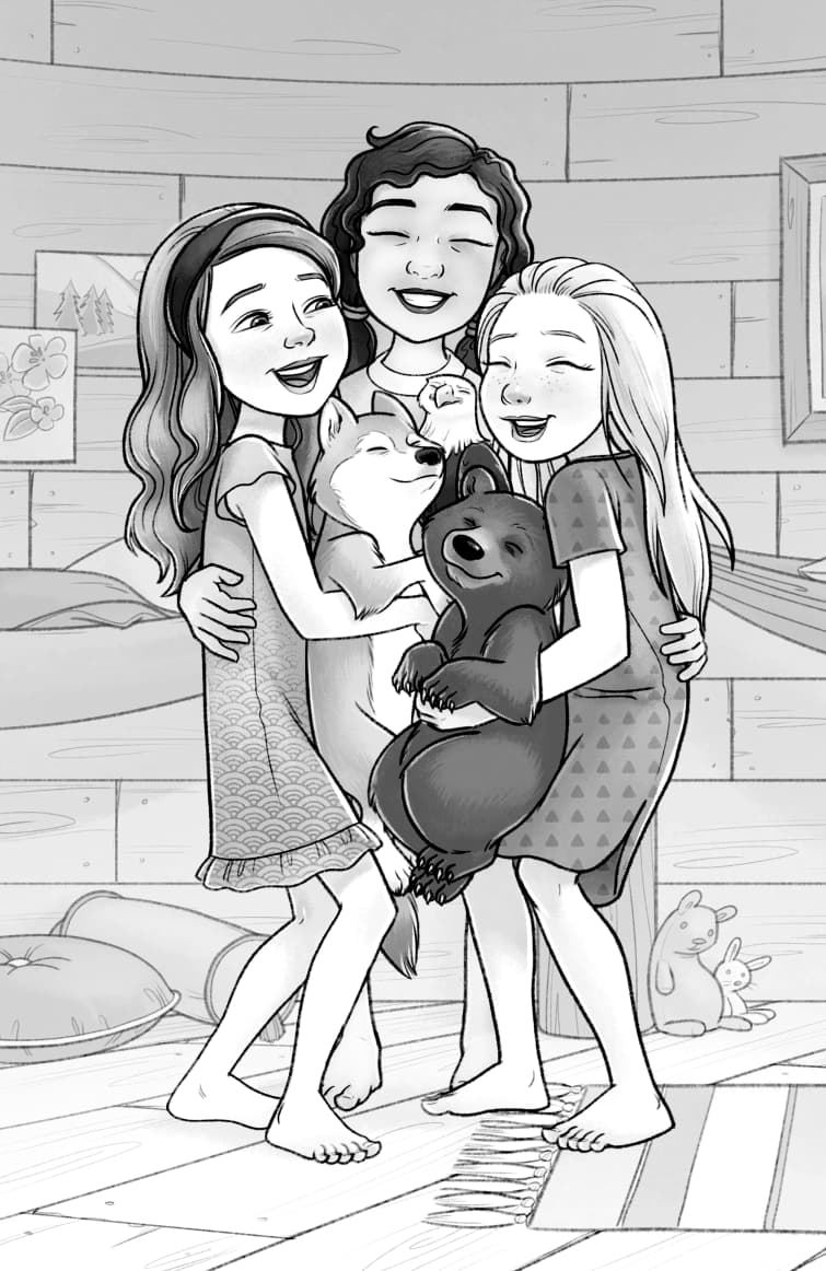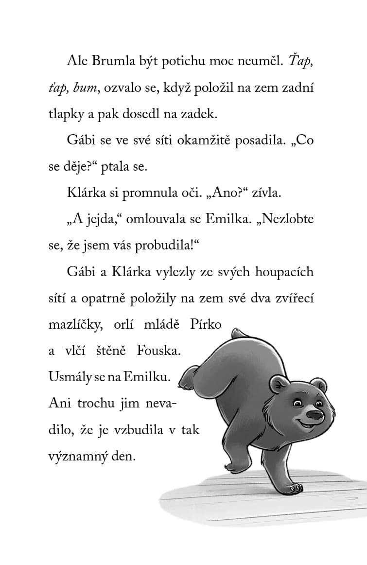 nalezl opuštěné v lese, kde každou z nich hlídalo jedno zvířecí mládě, medvídě Brumla, vlče Fousek a orle Pírko. Slavnostní den se ale zkomplikuje, když Tobík spadne do řeky a ocitne se v nebezpečí. Naštěstí se ukáže, že dívky i jejich zvířecí kamarádi mají díky svému kouzelnému přívěsku nečekané schopnosti. Jak asi všechno nakonec dopadne?