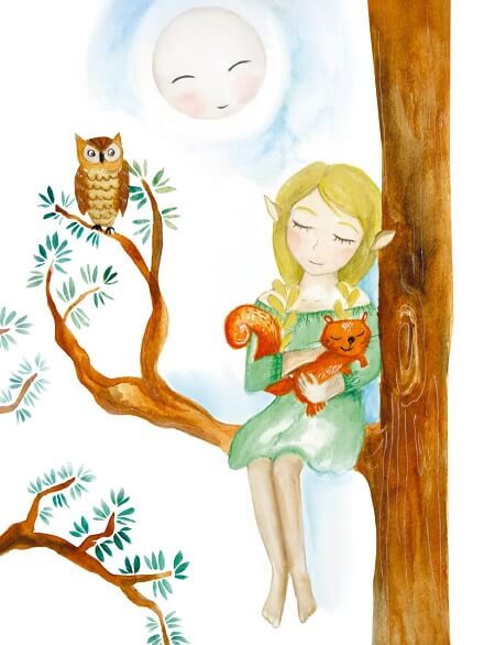 „Když jsem byla o něco starší, než jste teď vy, vydala jsem se jednoho večera se svojí sestrou Larií na objevnou výpravu za hranice naší Stromové země. Těšily jsme se, že uvidíme zblízka měsíc a navštívíme měsíční krajinu, která od nás není daleko, a zároveň začneme poznávat celý kouzelný svět, v kterém je mnoho krásných zemí. Vidím to jako dnes. Byl úplněk, zářil nám na cestu, a čím více jsme se přibližovaly, tím byla jeho záře silnější. Až jsme se v té záři ztratily…“