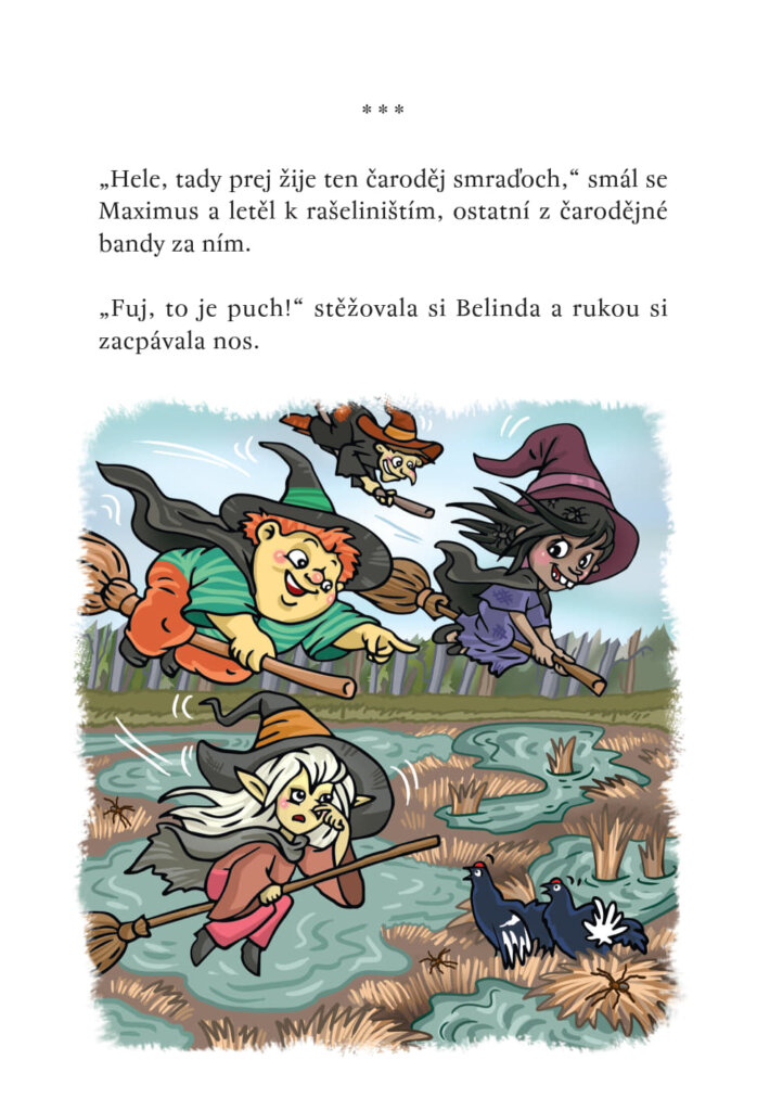 Co se však stane, když do lesa Bambručáku přiletí hejno malých čarodějů a čarodějek, kteří rádi zlobí a vyvádějí naschvály? Kouzelnice Bordelína musí spojit síly se svou maminkou Křiklavicí a bratrem Puchonosodorem, aby čarodějné pohromě zabránili. Podaří se jim to?