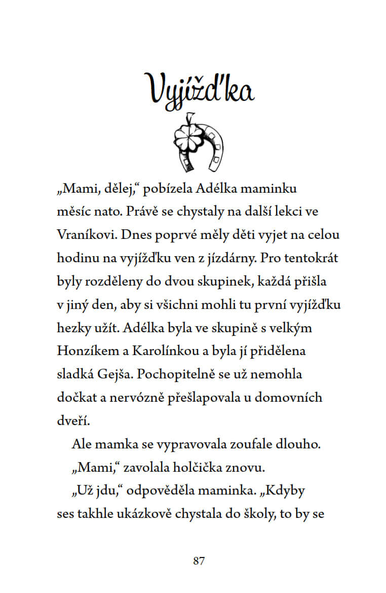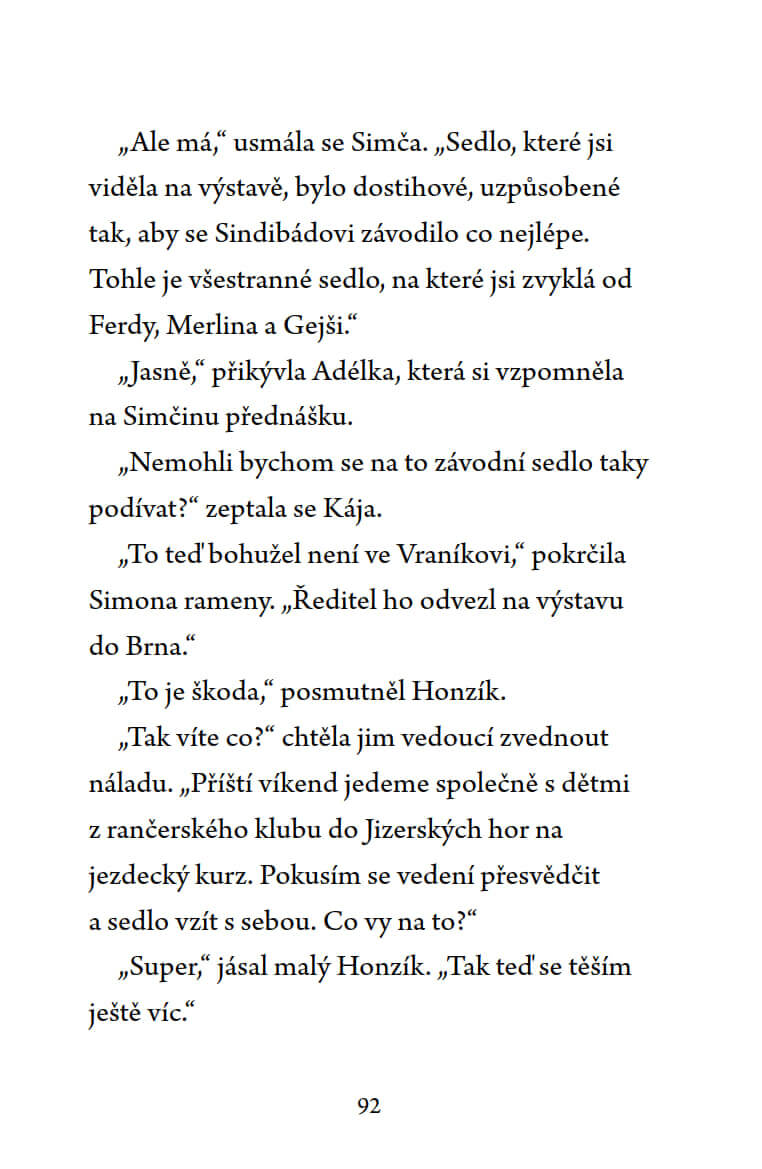 Adélka chodí do třetí třídy a miluje koně. S nadšením dochází do jezdeckého oddílu Vraník, kde se společně s dalšími dětmi o koně a poníky starají a užívají si vyjížďky po okolí. Během víkendu na koních, který děti z oddílu tráví na ranči v horách, dojde k nepříjemné události – ztratí se vzácné sedlo. Adélka s kamarádkou Karolínkou se neohroženě vydají po stopách zloděje a přes všechny nástrahy se snaží vypátrat, kam se to nádherné sedlo podělo.