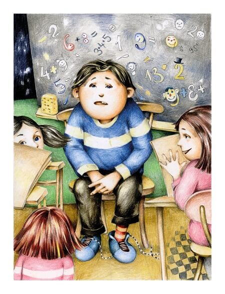 Nato začala pani učiteľka diktovať: „Šesť plus osem rovná sa…“ René na stoličke hneď odpovedal správne: štrnásť. A tak to pokračovalo s ďalšími príkladmi. René ich vypočítal všetky bezchybne. Bolo to čudné, lebo ešte donedávna nevedel, koľko je