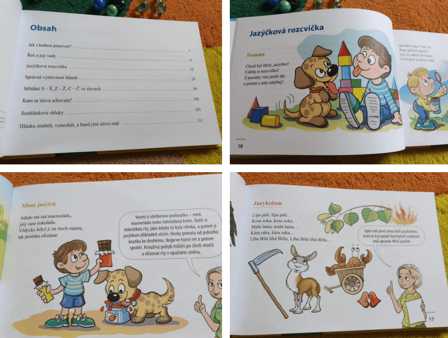 Ráda bych vám doporučila námi oblíbenou a velmi pěkně zpracovanou knihu Zuzany Pospíšilové – LOGOHRÁTKY od nakladatelství Bambook. Logohrátky pomáhají dětem a rodičům zábavnou formou trénovat výslovnost, obsahují různé jazykové rozcvičky, hádanky, doplňovačky, jazykolamy či básničky.