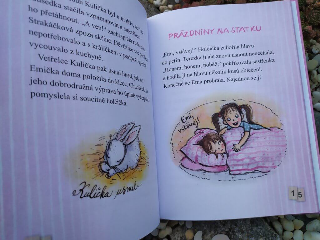 Z celé knihy vyřazuje láska ke zvířatům. Hlavní protagonistka knihy – šestiletá Ema je velice milá, přátelská a starostlivá holčička, jež postupem času získává se zvířátky nejen spoustu zážitků, ale i zkušeností. Sympatická hrdinka se může stát příkladem mnoha dětem. Vzor čestnosti, nezkažená lidmi ani světem. O ilustrace se postarala Markéta Vydrová. Milé čtení pro děti kolem šesti, sedmi let vás jistě nezklame. Navíc koupí této knihy přispějete na dobrou věc, autorský honorář je věnovaný fondu dětské onkologie KRTEK.