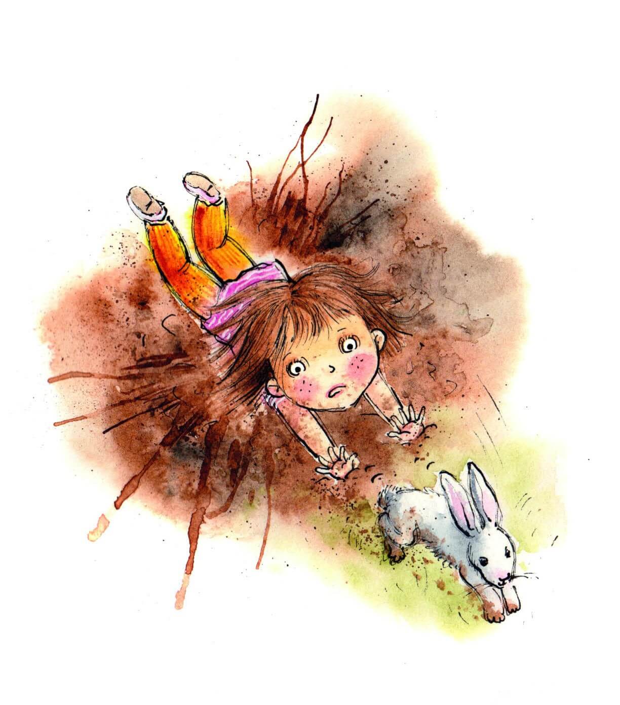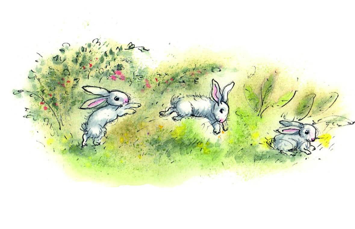 Malý králíček byl ale i tentokrát rychlejší. Zakoulel očima, střihl ouškem a hbitě uskočil. Emička dopadla nosem do bahna. Kulička mezitím vesele odhopkal na schody sousedovic domu a s plným bříškem se tam uvelebil. Skoro se zdálo, že čeká, až ho Emička přijde podrbat za ušima.