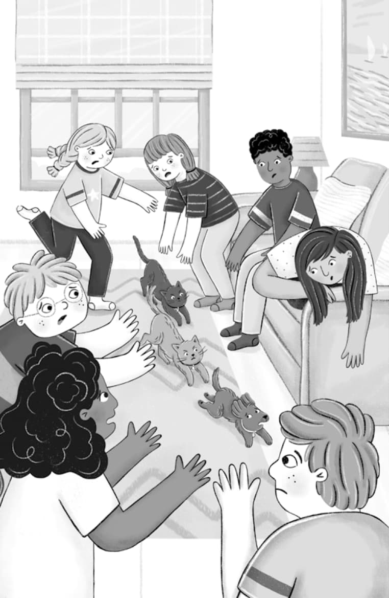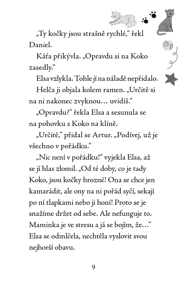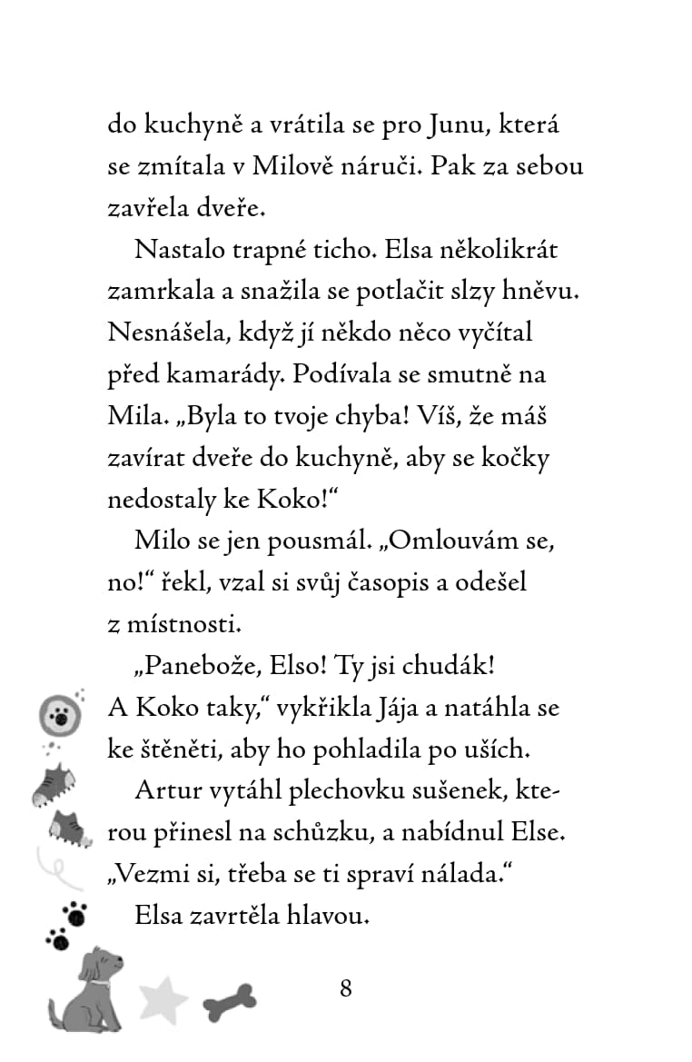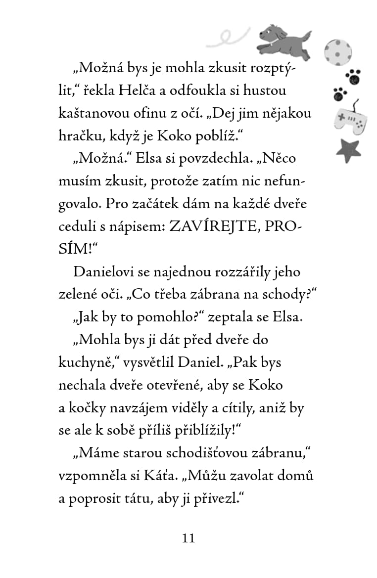Naštěstí má Elsa kamarády Jáju, Káťu, Daniela, Artura a Helču, kteří rádi pomohou. Úkol je jasný – vymyslet plán, jak kočky spřátelit se štěnětem. Ale jde to vůbec?
