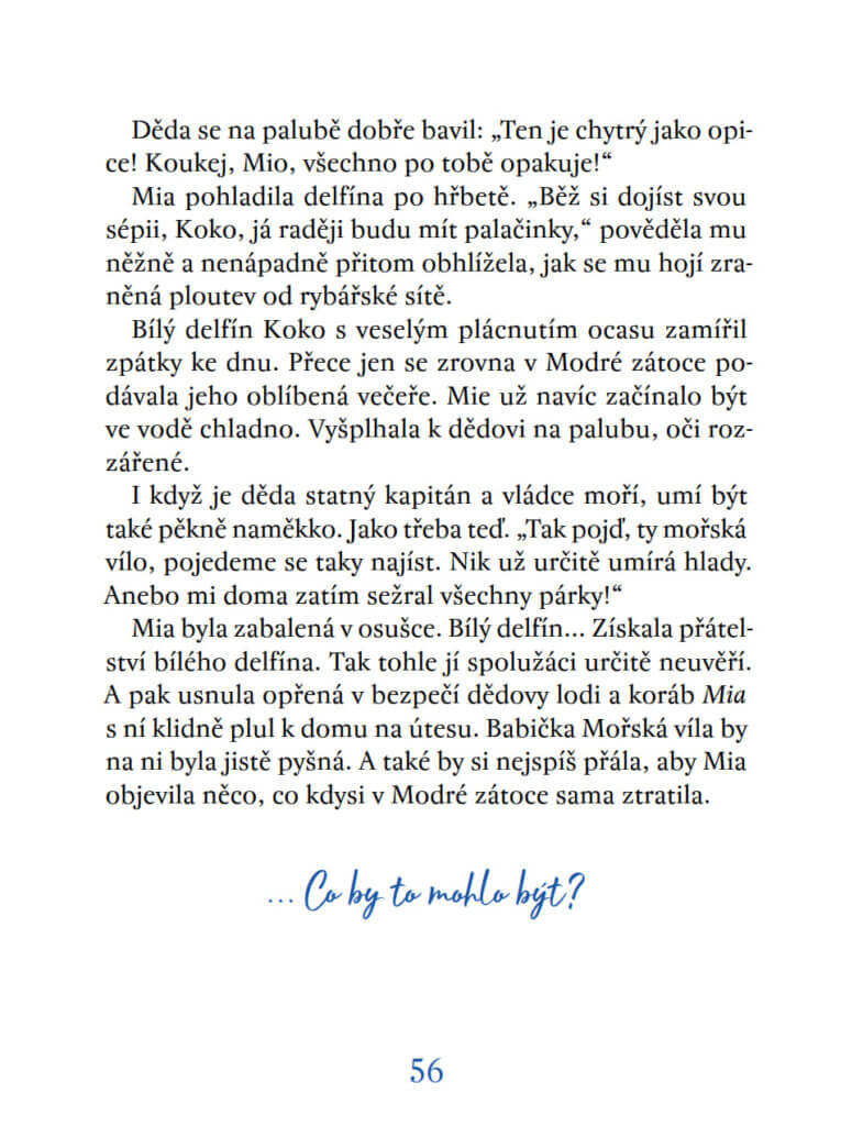 Mořské pláže mohou nabídnout i zajímavější nálezy než jen barevné mušličky. Dříve bázlivá Mia skočí šipku do jednoho velkého mořského dobrodružství a chytí se za bílou ploutev neuvěřitelného přátelství. Byla její babička opravdová mořská víla? Nechte se překvapit!
