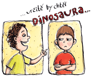 Matěj trhl rameny a neodpověděl. „Určitě by chtěl dinosaura, když jeho táta pracuje v muzeu,“ chechtal se Pepík. Paní učitelka se na Pepíka zamračila. „Tak to ne, Pepíku, tohle se nedělá!“ vyhubovala mu. „Děti, co jsme si říkali? Nikdy se kamarádům neposmíváme, že?“ Třídou se neslo hlasité: „Anoooo!“ Paní učitelka Pepíkovi pohrozila, že jestli ho ještě jednou uslyší, jak se někomu posmívá, zůstane za trest po škole. A také se musel Matějovi omluvit. Ten však o jeho omluvy nestál. Pepík měl totiž pravdu. Skutečně neměl doma žádného mazlíčka, ale moc by ho chtěl. Koukal na prázdný papír a přemýšlel, jakého by chtěl úplně nejvíc. Dinosaurus by byl super, jenže to je hloupost. Tak co třeba takový tygr nebo leopard? Hned si představil, jak by ho doprovázel do školy. A kdyby si na něj Pepík dovoloval, dal by mu co proto. Jenže to by taky nešlo. Když byl Matěj ještě malý, přál si pštrosa. V televizi jednou viděl, jak na něm jeden docela malý kluk jezdí, a přišlo mu to prima. Ale to bylo dávno, to ještě chodil do školky. Teď už je ve druhé třídě! Líbilo by se mu mít za mazlíčka třeba orla nebo sokola, ale tatínek říkal, že ptáci v zajetí trpí.