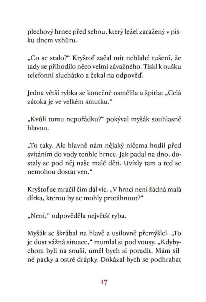 Ale co to? Nadšení střídá zděšení. Velké myší dobrodružství se změní v záchrannou akci. Úhořice se zamotala do starého pletiva, malé rybky uvázly pod harampádím… Z řeky se stalo jedno velké smetiště!