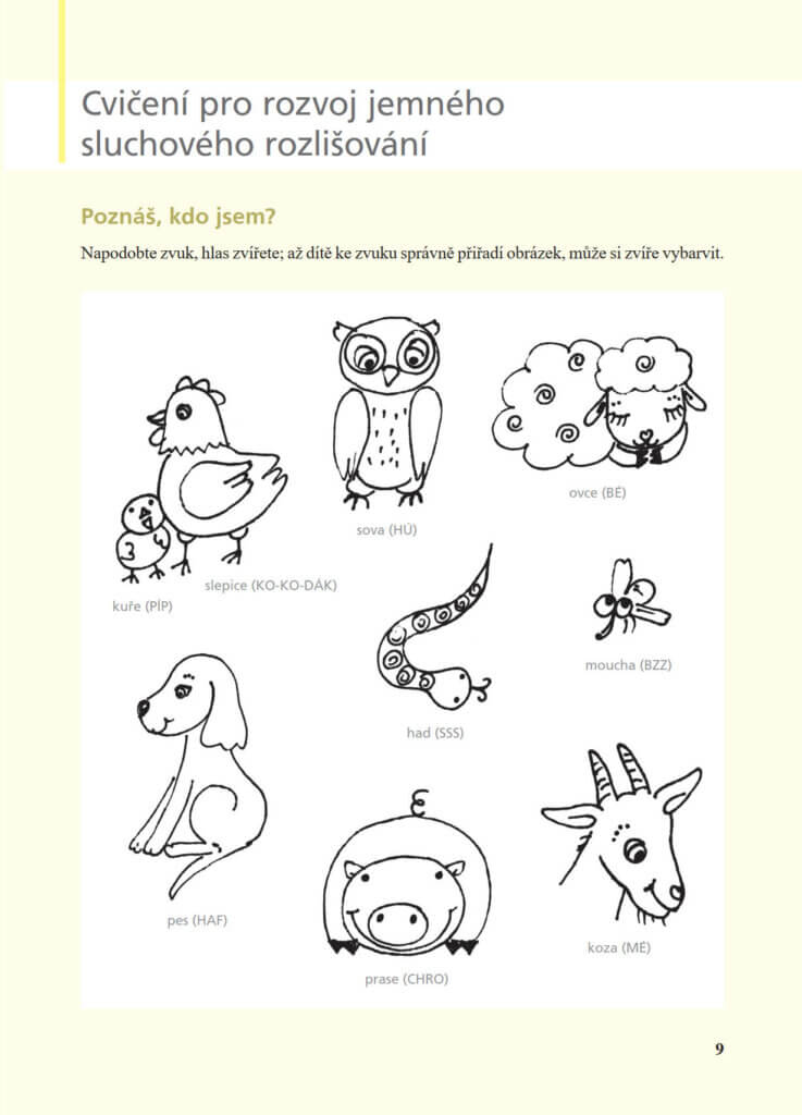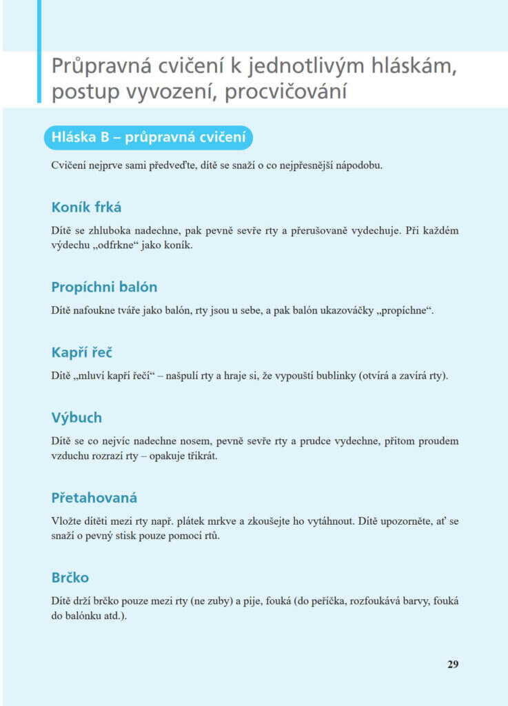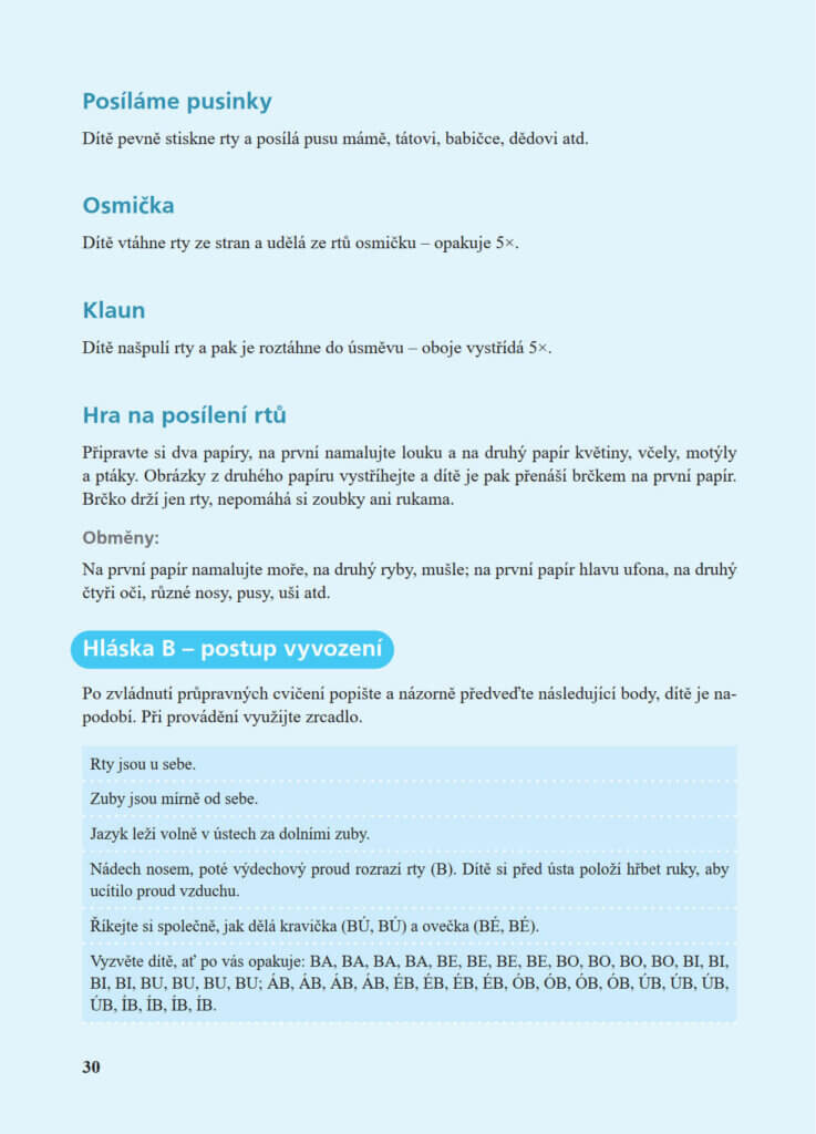 Čekají vás cvičení na rozvoj sluchového vnímání, rozlišování zvuků a hlásek, aktivity zlepšující pohyblivost a přesnost jazyka i názorné ukázky k vyvozování, procvičování a zafixování výslovnosti hlásek B, T, N, D, Ť, Ň, Ď, L, K, C, S, Z, Č, Š, Ž, R, Ř.