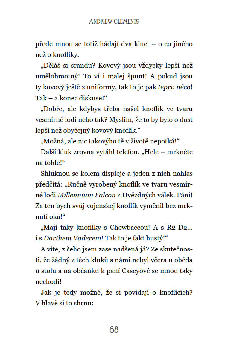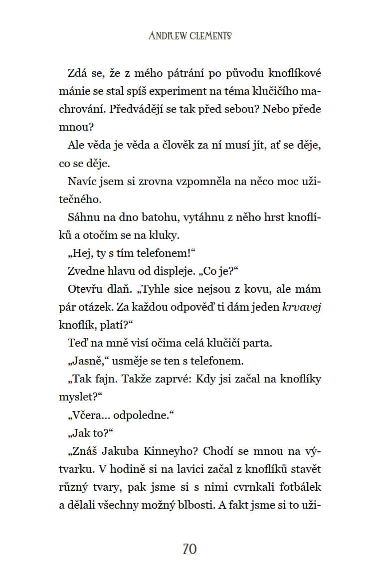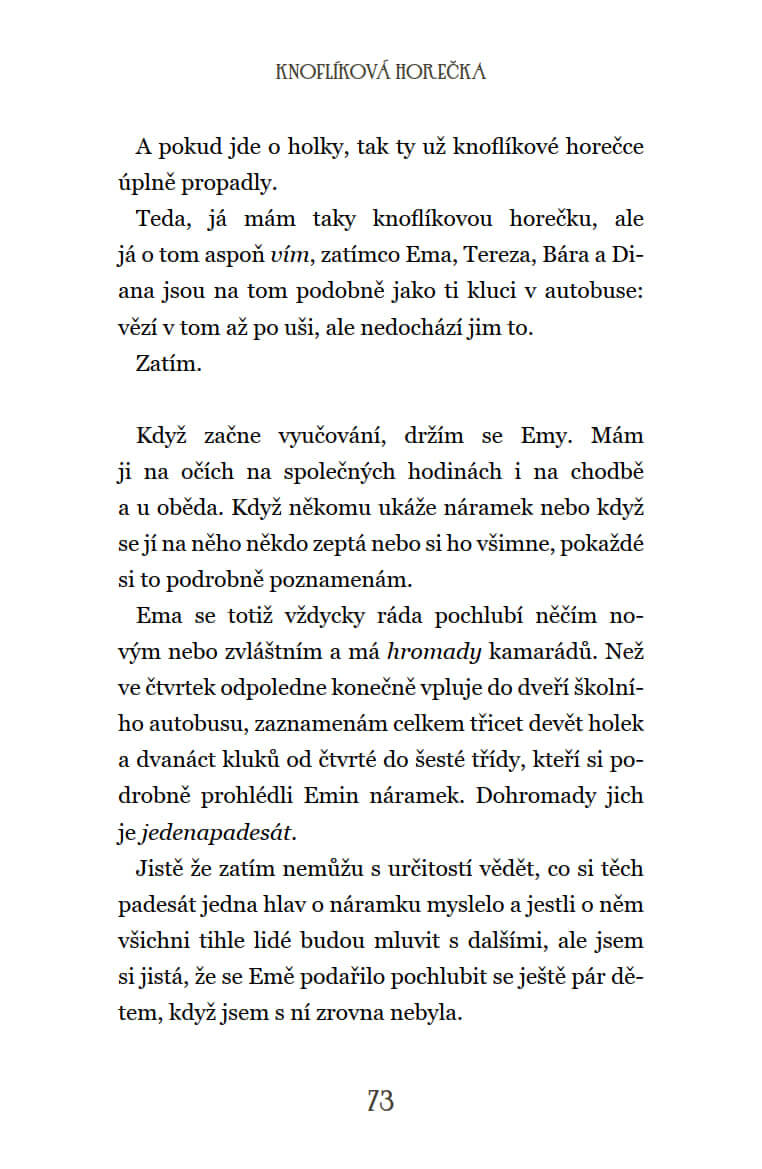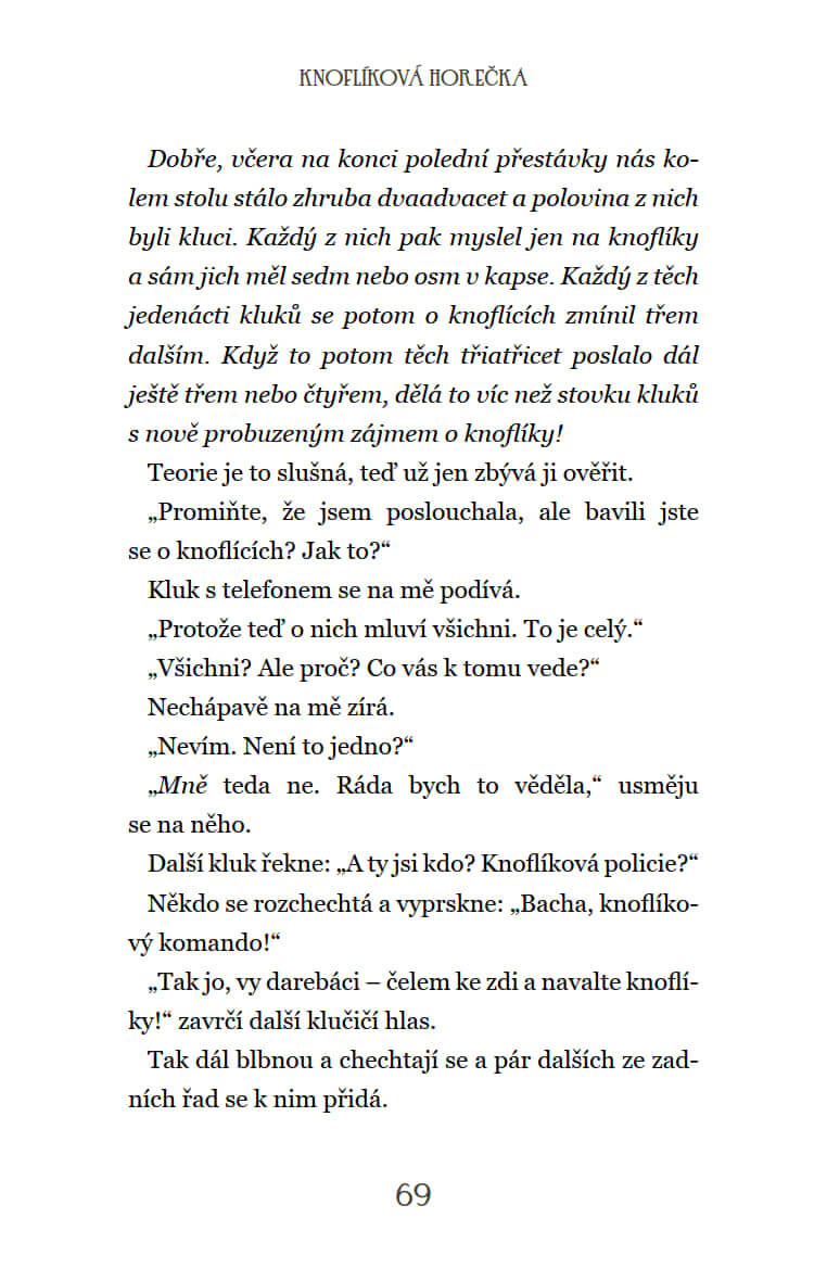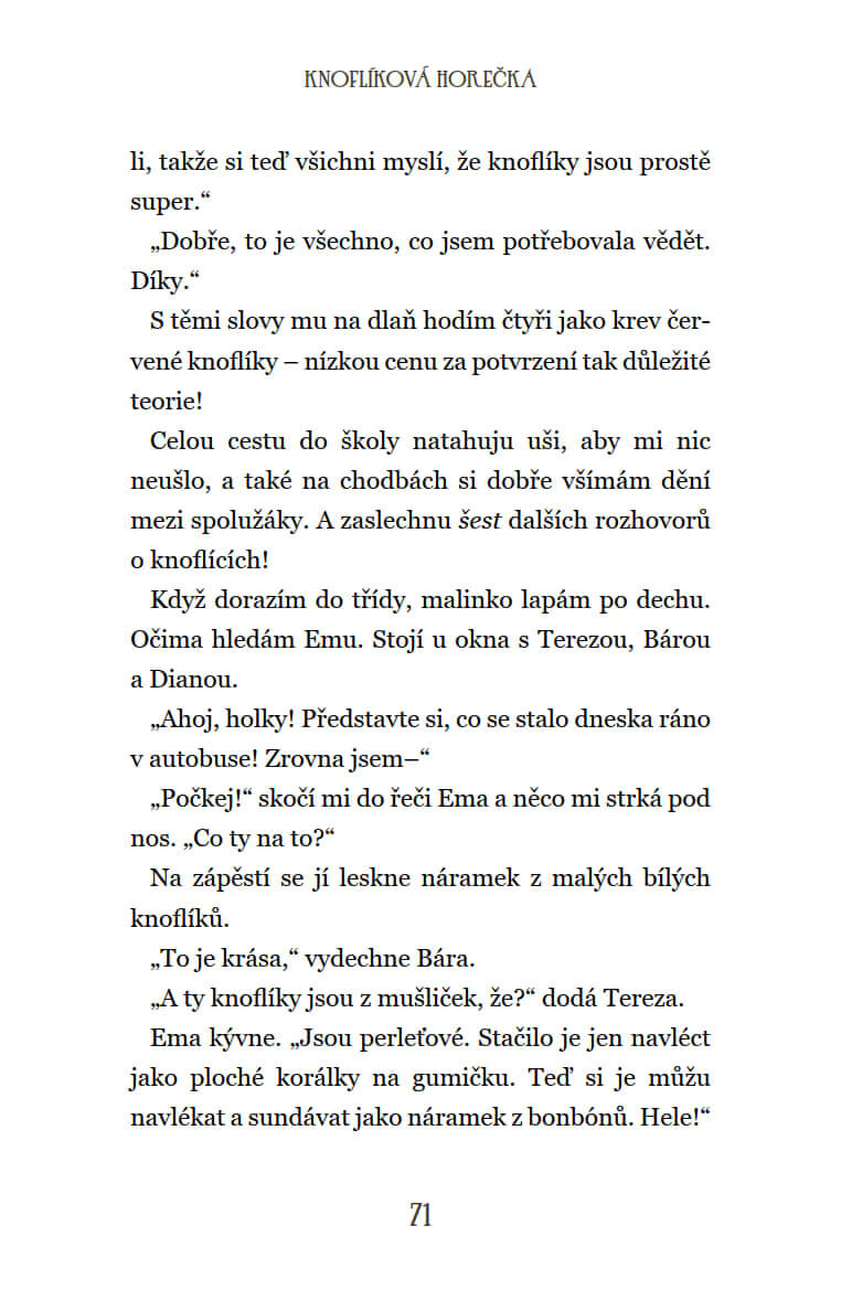 Lucie a Ema jsou už od druhé třídy nejlepší kamarádky. Po návratu z prázdnin ale Lucie úplnou náhodou odstartuje novou knoflíkovou módu, která postupně pohltí celou školu. Všichni si vyměňují vzájemně knoflíky, nemluví o ničem jiném než o knoflíkách a z Lucie se stane hvězda. A to je zkouška nejen pro Emu, zvyklou být neustále v centru pozornosti, ale i pro holčičí kamarádství jako takové. Rozdělí se dívky úplně, nebo k sobě znovu dokážou nalézt cestu?