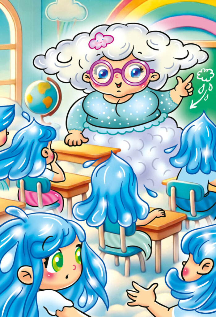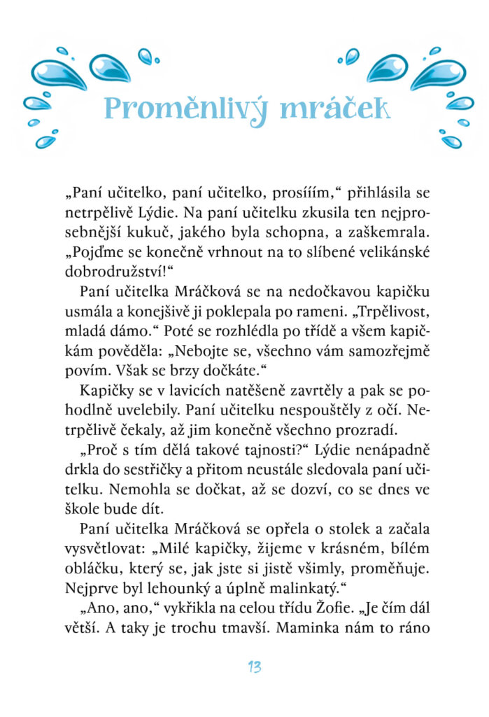 V obláčku se žije tak krásně! Své o tom ví třída zvídavých kapiček v čele s paní učitelkou Mráčkovou. Ta si pro své žáky připravila výpravu na zem. Jenže jak se tam kapičky dostanou?