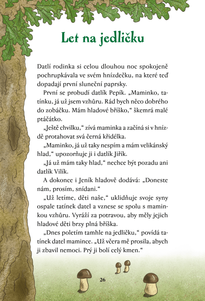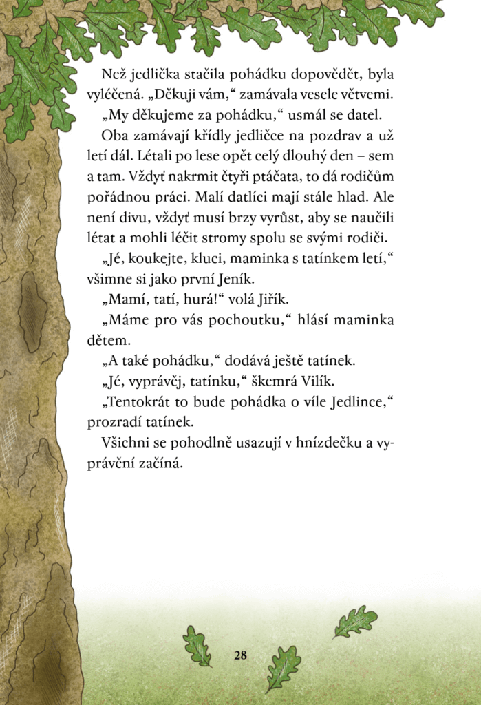Chtěli byste se dozvědět, proč modřín na zimu opadává, jak je možné, že jedličce rostou šišky směrem nahoru nebo jaký tvar listů má lípa? Tak se pohodlně uvelebte v hnízdečku a zaposlouchejte se do vyprávění datlího tatínka.