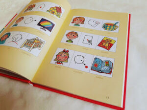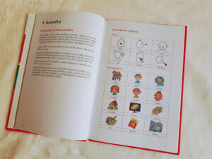 Ke každému tématu je uvedena nejdříve krátká pohádka. Na vedlejší stránce jsou pak obrázky a piktogramy se slovy, které se v pohádce objevují.