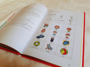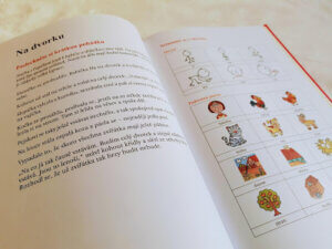 Kniha spojuje textové a obrázkové čtení a dává dětem možnost se zapojit do vyprávění, což se mi moc líbí. Už jsme měli doma pár knížek, kde část textu nahrazovaly obrázky a Beky se tak mohla do čtení zapojit. U této knížky dítě ale tvoří celé věty, takže je to zase něco jiného.