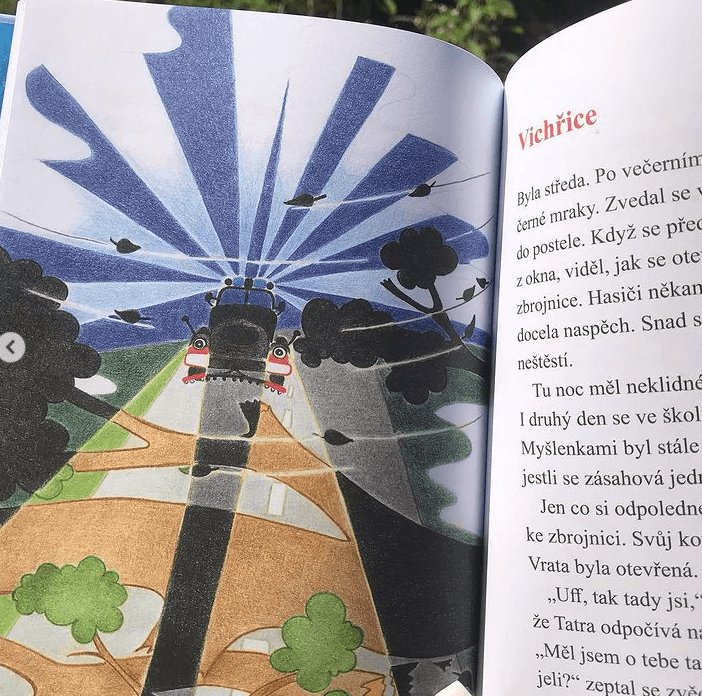 „Jirka chodil za Tatrou téměř každý den. Pokaždé si otevřel vrata hasičské zbrojnice svým kouzelným klíčkem, vlezl cisterně do kabiny a zaposlouchal se do jejího vyprávění. Tatra mu povídala o tom, co všechno už zažila. Některé příběhy byly veselé a jiné zase smutné. Ale všechny měly jedno společné. Šťastný konec.“