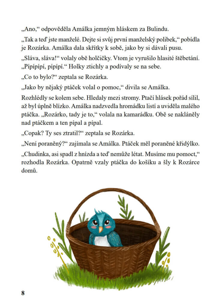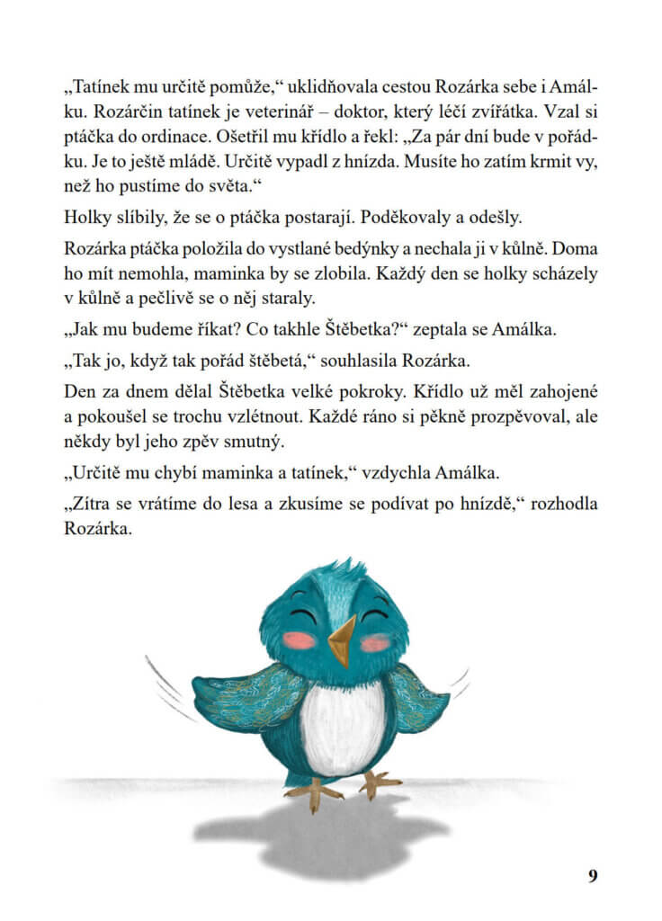 Pod hromádkou listí najdou ptáčka, který vypadl z hnízda. Poranil si křídlo, a tak nemůže létat. Holčičky se postarají nejen o ptáčka, ale spolu s ním pomáhají i dalším zraněným zvířátkům a také zachraňují les. Chcete se dozvědět, co všechno při ochraně přírody zažijí? Pusťte se do čtení a zajímavých úkolů!