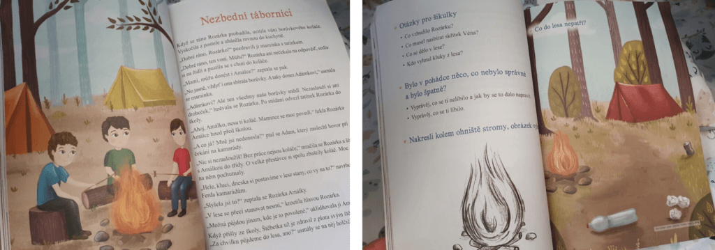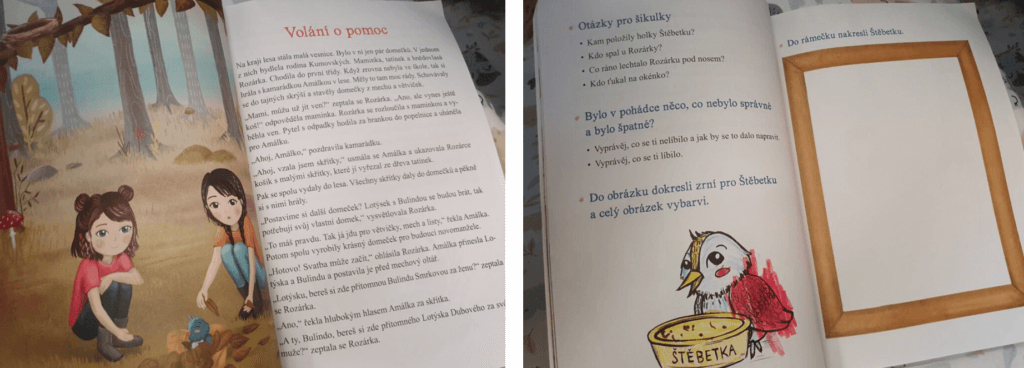 Ptačí štěbetání je velmi povedená kniha pro předškoláky či mladší školáky, bude však bavit také rodiče. My si každý večer čteme jednu kapitolu, děti příběhy a hlavně otázky na konci hrozně baví a já zase oceňuji, že se večerní počtení vejde zhruba do 15 minut, což je snesitelné i pro unavené rodiče 😊.