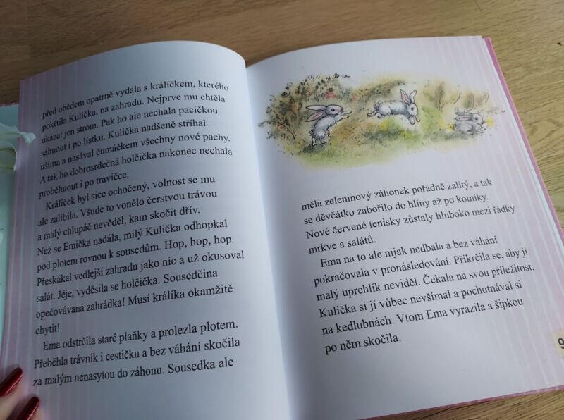 Začnu rovnou příběhem, který spadá do edice Čtení pro prvňáčky. Knihu ilistrovala Markéta Vydrová a podle mě se jí to povedlo. Kniha je poskládaná z kratších nezávislých příběhů, kde malá holčička Ema zažívá různá dobrodružství. Jejími parťáky jsou nejčastěji různá zvířátka a zažívá s nimi různé eskapády. Emička zvířátka miluje, takže je z nich nadšená. Text je jednoduchý, nejsou zde náročná slova a příběhy jsou lehce poučné. Myslím si, že nijak nevadí, že hlavní hrdinkou je malá holčička, kniha se bude určitě líbit i klukům, co mají rádi zvířátka.