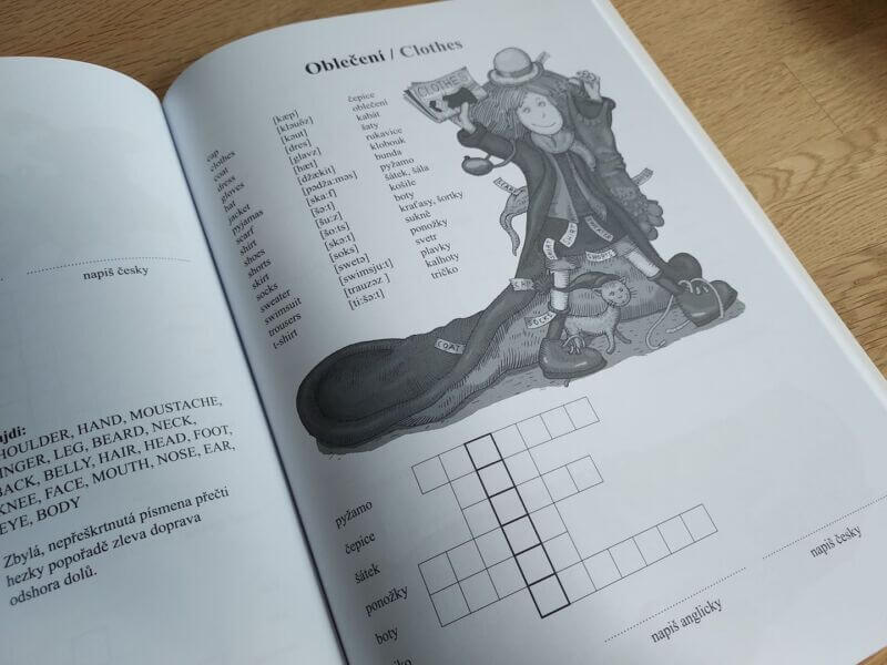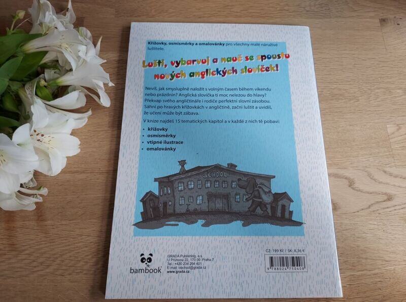 Angličtina se dnes učí už ve školce a hravé formy výuky cizího jazyka jsou rozhodně populární. Můj kolega Milan zrovna připravoval minulý týden jednu křížovku pro žáky. Uvnitř najdete přes 100 křížovek a osmisměrek, které jsou seřazeny tematicky – např. čísla, oblečení, nábytek, rodina, škola apod. Kniha je brožovaná, uvnitř má černobílé ilustrace, za kterými stojí Drahomír Trsťan. Ty se tedy povedly a dokonce je možné některé obrázky dovybarvit, což mi přijde chytré. I když je to povedené jako kniha pro děti, já bych řekla, že se to hodí pro všechny, kdo začínají s učením cizího jazyka. Líbí se mi, jak je kniha uspořádaná. Na začátku kapitoly je vždy seznam slovíček s i českým překladem a výslovností. Pak je tam několik klasických křížovek a osmisměrek, kde si každý může danou slovní zásobu procvičit. Autorka pak pracuje i s tajemnou, takže je to takové pěkně didaktické:-) Na konci knihy najdete samozřejmě i řešení.