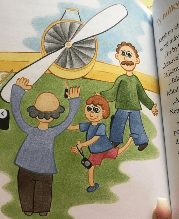 „Piloti ostatních letadel začali zvědavě vykukovat z kabin. Postupně vypínali motory a šli se podívat, co se děje. Viděli malého chlapce, který seděl na křídle vyřazeného Čmeláka, a kroutili hlavami.“