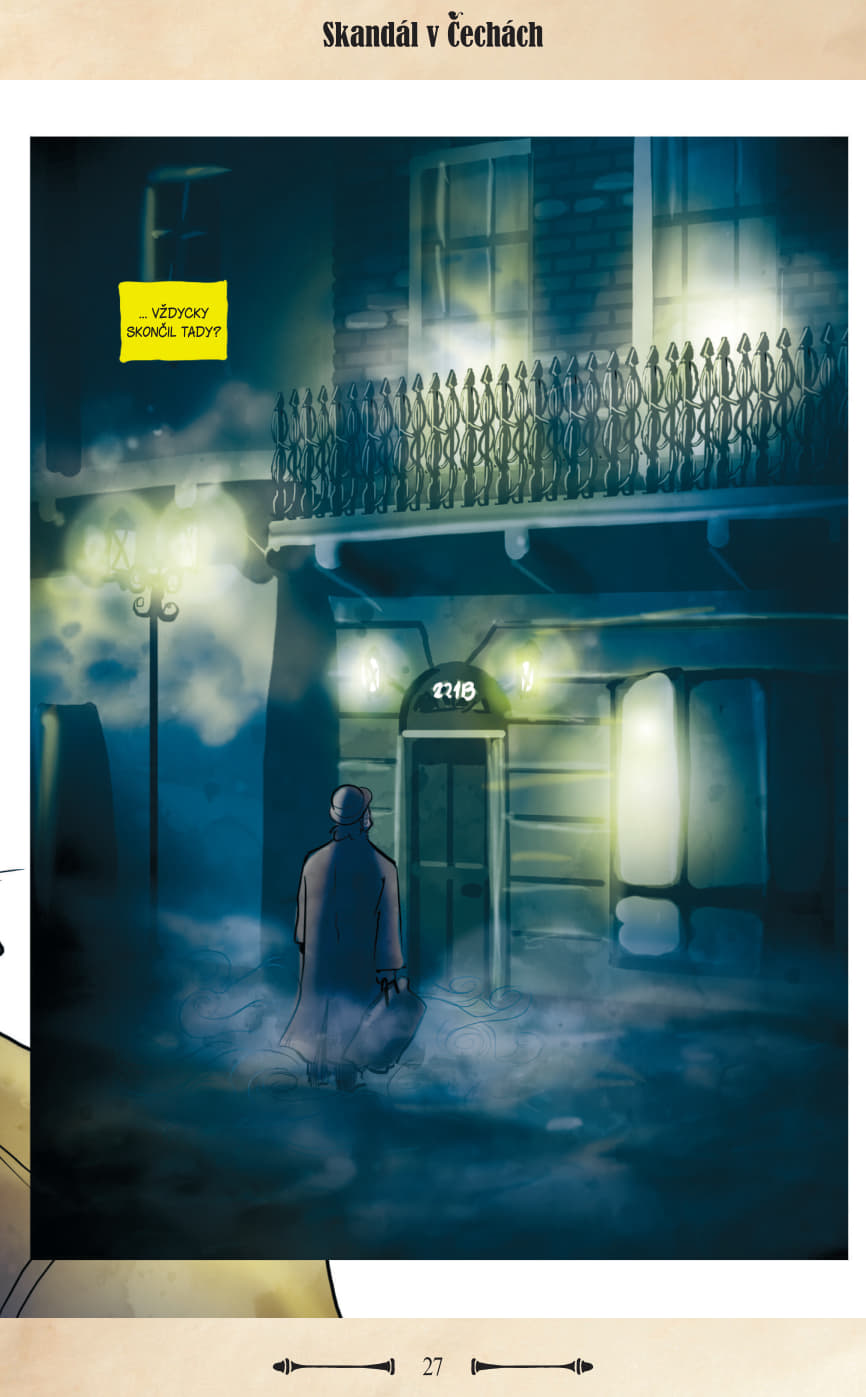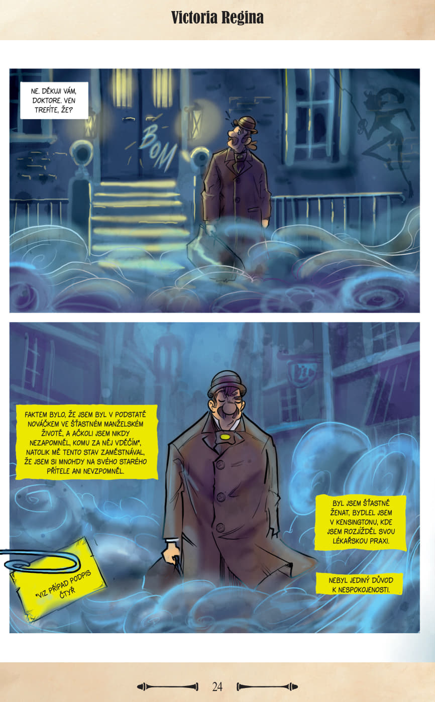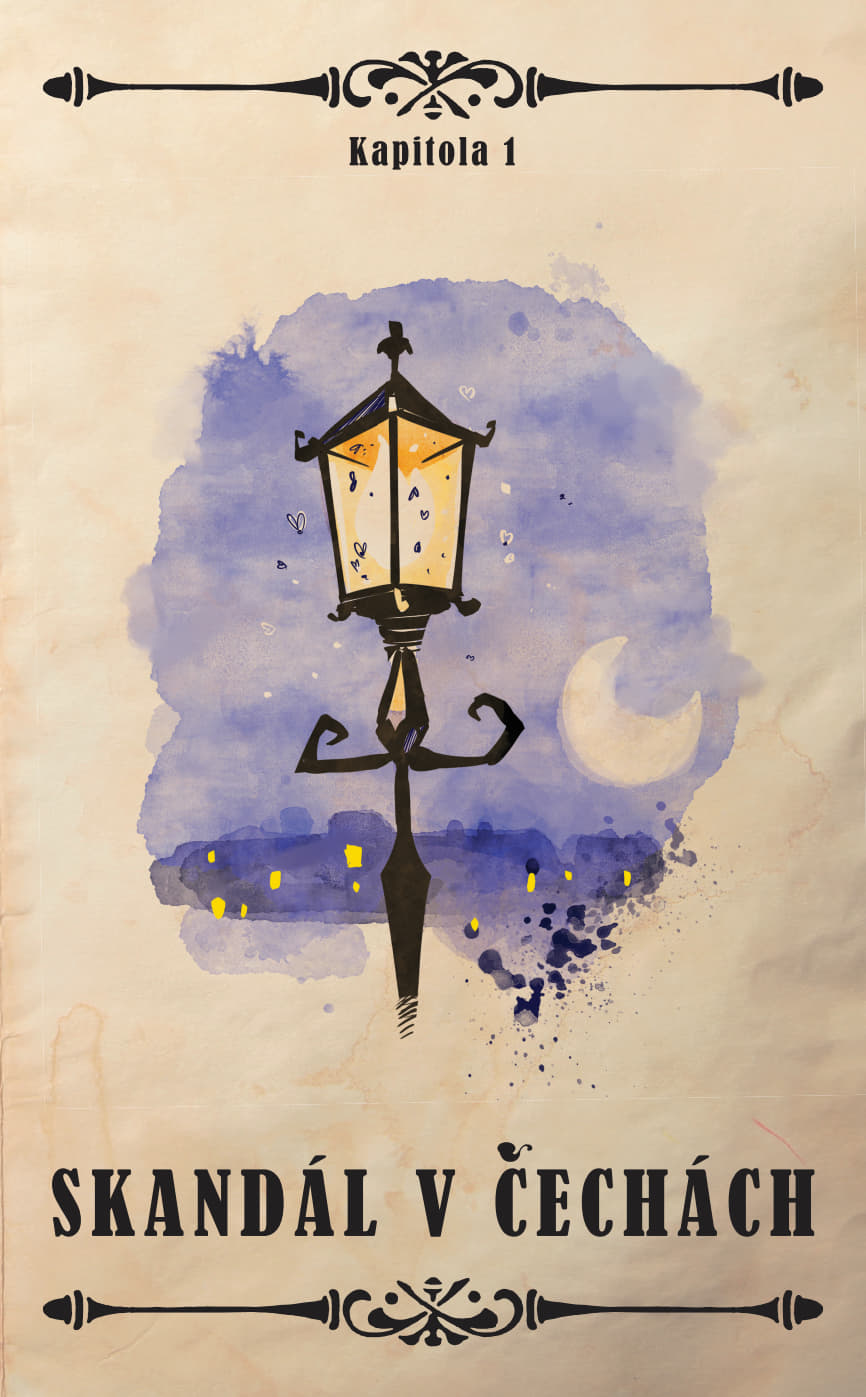 Detektiv Sherlock Holmes vyšetřuje skandál v Čechách. Podaří se mu i tentokrát vše brilantně vyřešit? V této komiksové adaptaci se proplétá hned několik případů. Název prvního z nich – Skandál v Čechách – dal jméno i celé knize. Druhý příběh – Strakatý pás – přivádí Sherlocka Holmese i dr. Watsona na anglický venkov, kde nebývá nouze o nejrůznější překvapení. Petr Kopl zachází s předlohou volně, ale drží se jádra příběhu, a pokud někde něco přidá, otevírá si tím dvířka do světa dalších mystifikací; stále však zůstává v době končícího 19. a začínajícího 20. století, kterou nazývá Victoria Regina.