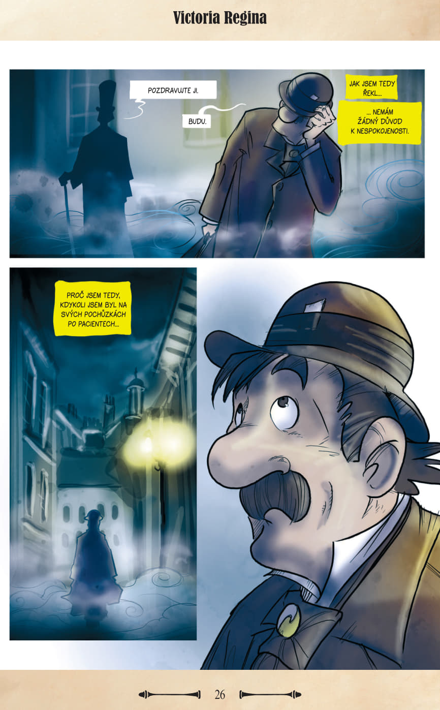 Victoria Regina je série komiksů, ve kterých Petr Kopl umně splétá klasické romány viktoriánské literatury tak, aby se dějově prolínaly a vytvořily jeden velký příběh. A tak nás tu autor velmi citlivě s ohledem na předlohu provádí nádhernou krajinou fantazie našich dědečků a babiček a dává jim nový vtipný a barevný kabát.