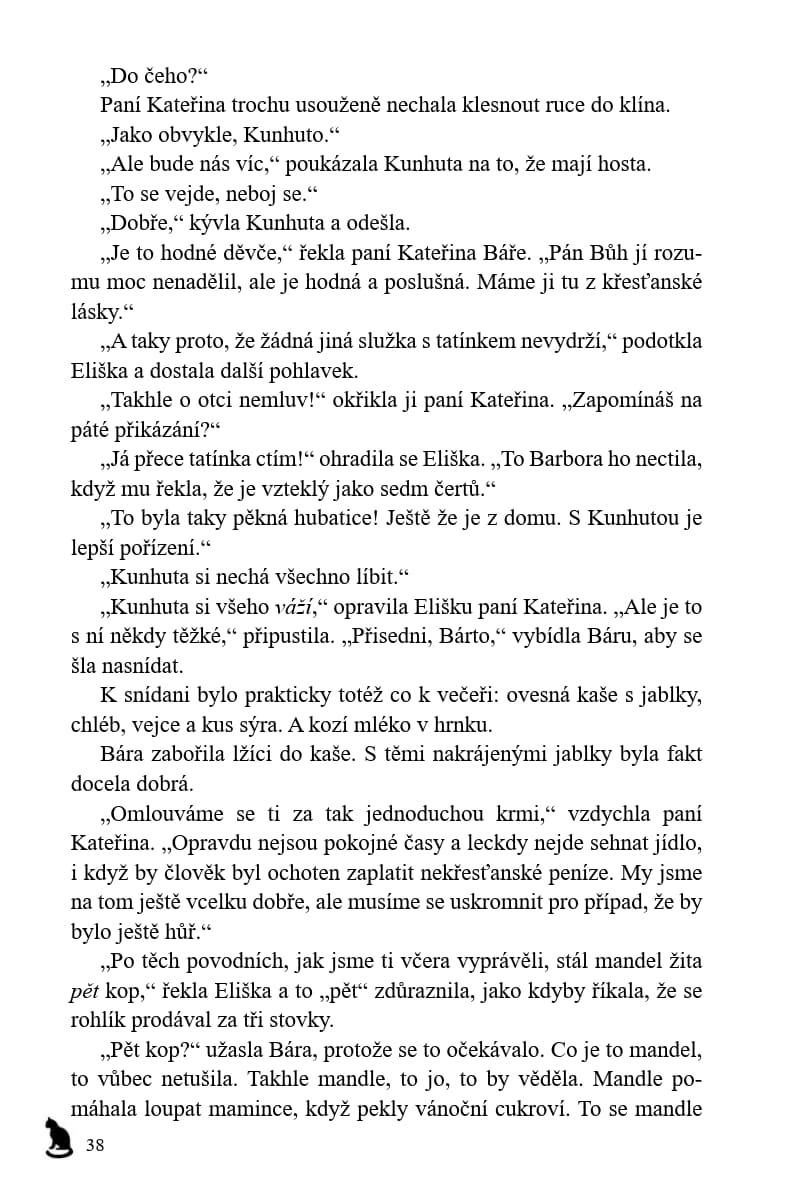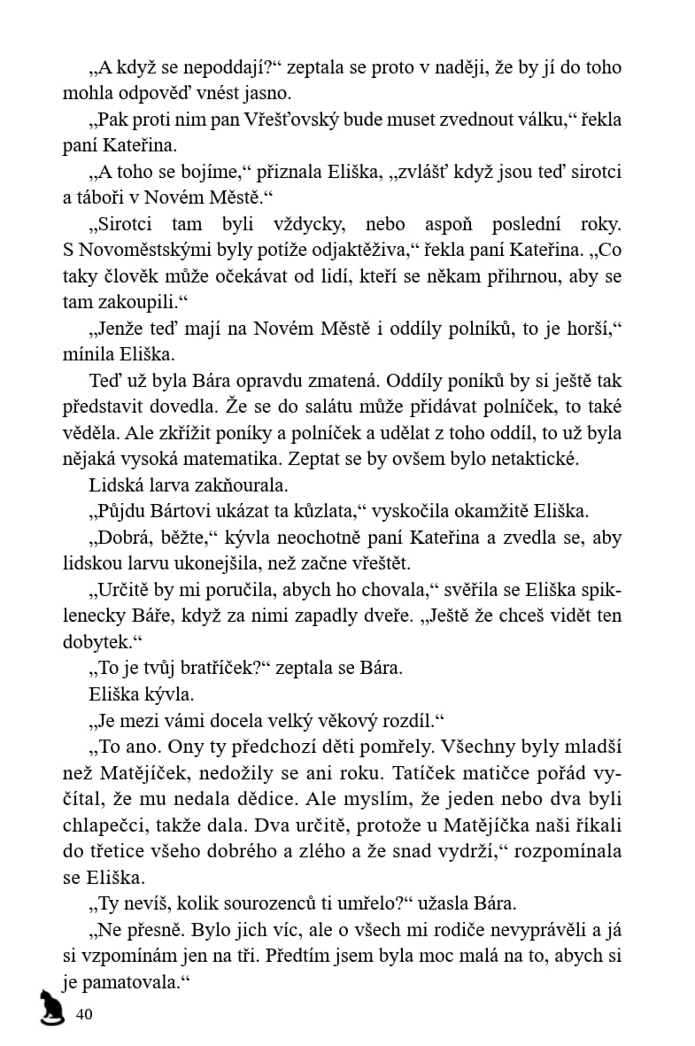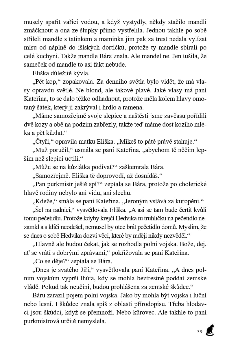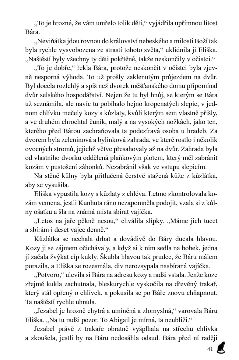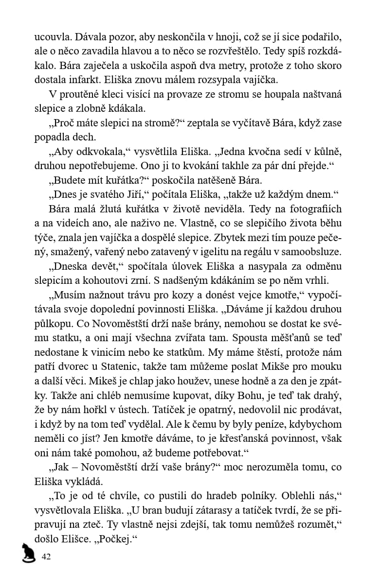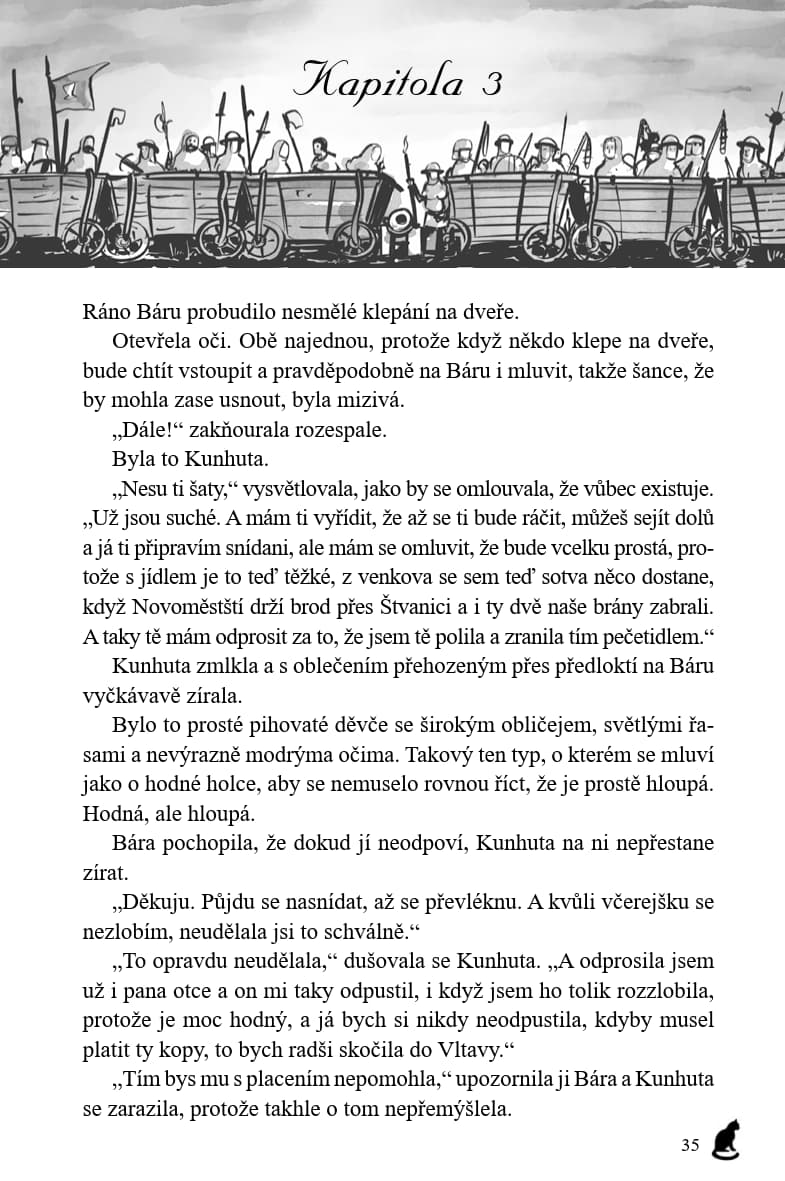 Od prvního setkání s Borkem v bitvě na Vítkově uběhlo čtrnáct let. Už to není malé práče, ale dospělý muž. A zase se schyluje k bitvě. Tentokrát se budou bít Češi mezi sebou – radikální husité, kteří terorizují zemi a ani v nejmenším si nepřejí, aby byl v Basileji uzavřen mír, a proti nim umírnění husité a katolíci. Pro Báru je velkým překvapením nejen to, na jaké straně Borek bojuje, ale i to, že se tu setká s budoucím českým králem Jiříkem z Poděbrad, který o své královské budoucnosti pochopitelně nemá nejmenší tušení.