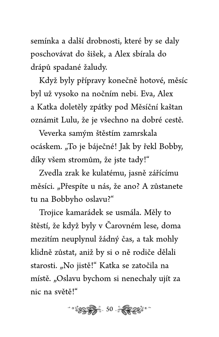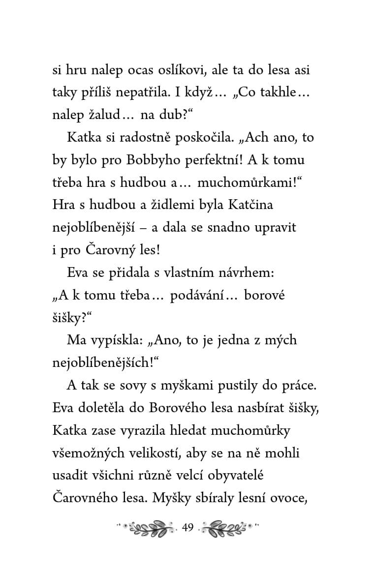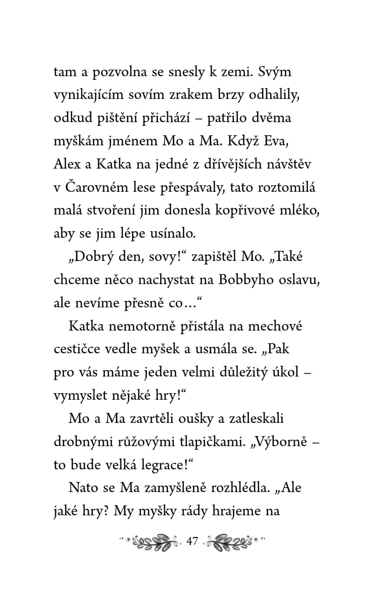 Kamarádky Eva, Katka a Alex se kouzlem promění v sovy a spolu s ostatními zvířátky pomáhají v Čarovném lese s přípravou narozeninové oslavy pro jezevce Bobbyho. Má to být velké překvapení! Ale Bobby náhle zmizí. Podaří se sovám oslavence najít? Vstupte s námi do světa fantazie!