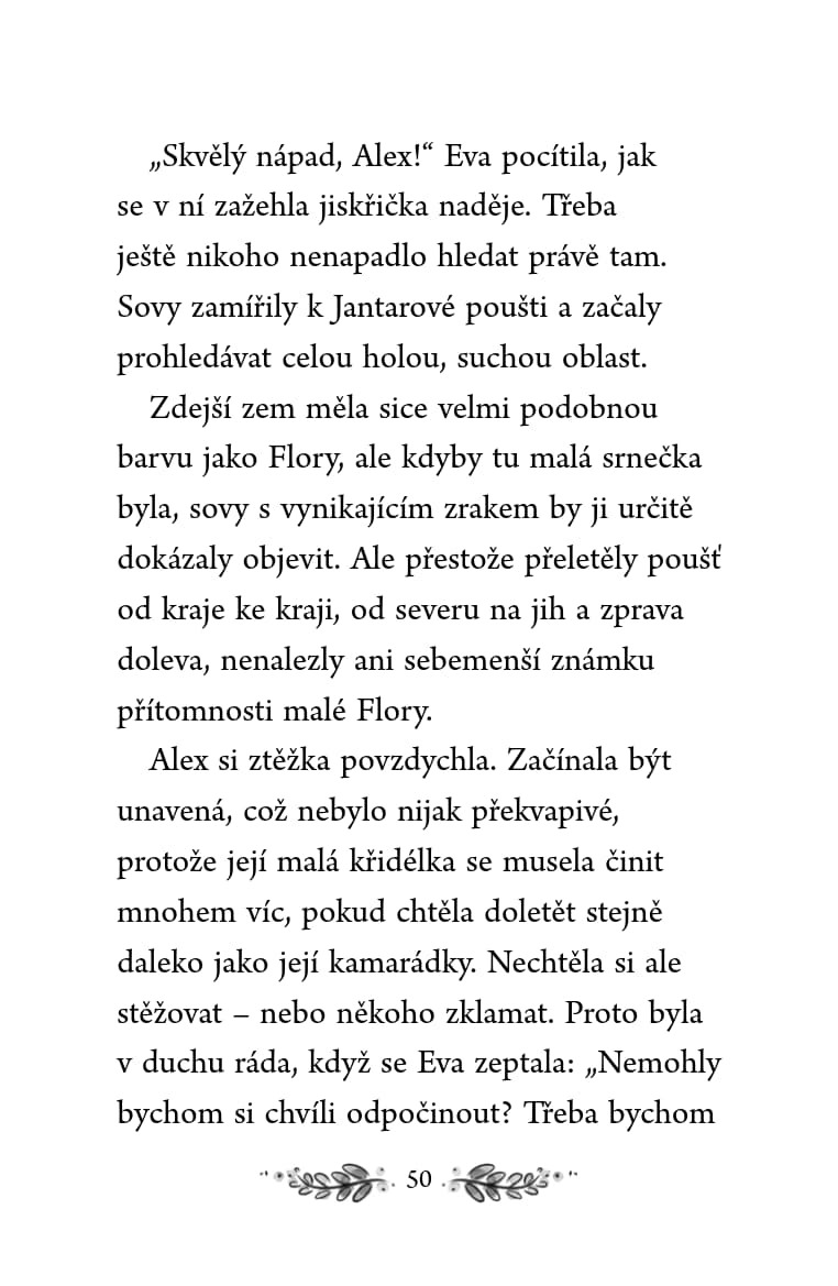 Kamarádky Katku, Evu a Alex čeká další báječné dobrodružství v Čarovném lese. Dívky se kouzlem promění v nádherné sovy a přenesou se do magického světa obývaného roztomilými zvířátky. Tentokrát potřebuje jejich pomoc malinká srnečka, která se zatoulala a nemůže najít cestu domů. Dokážou ji moudré sovy najít? Vstupte s námi do světa fantazie!